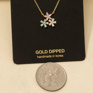 Gold Dipped Triple Cz Flowers Pendant Necklace
