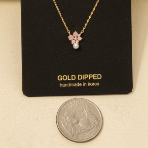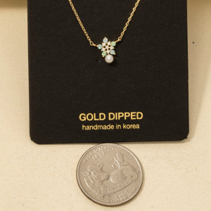 Gold Dipped Cz And Pearl Flower Charms Chain Necklace