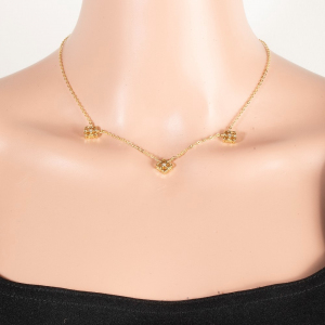 Cubic Zirconia Triple Flower Station Chain Necklace