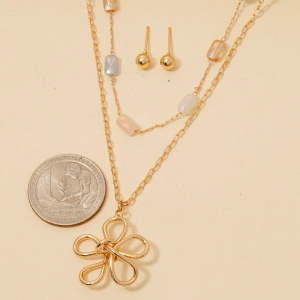 Gold Dipped Cz Bow Tie And Flower Pendant Necklace