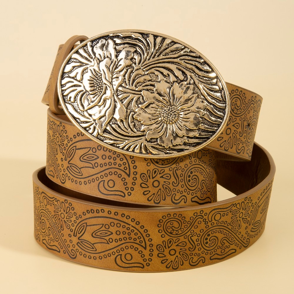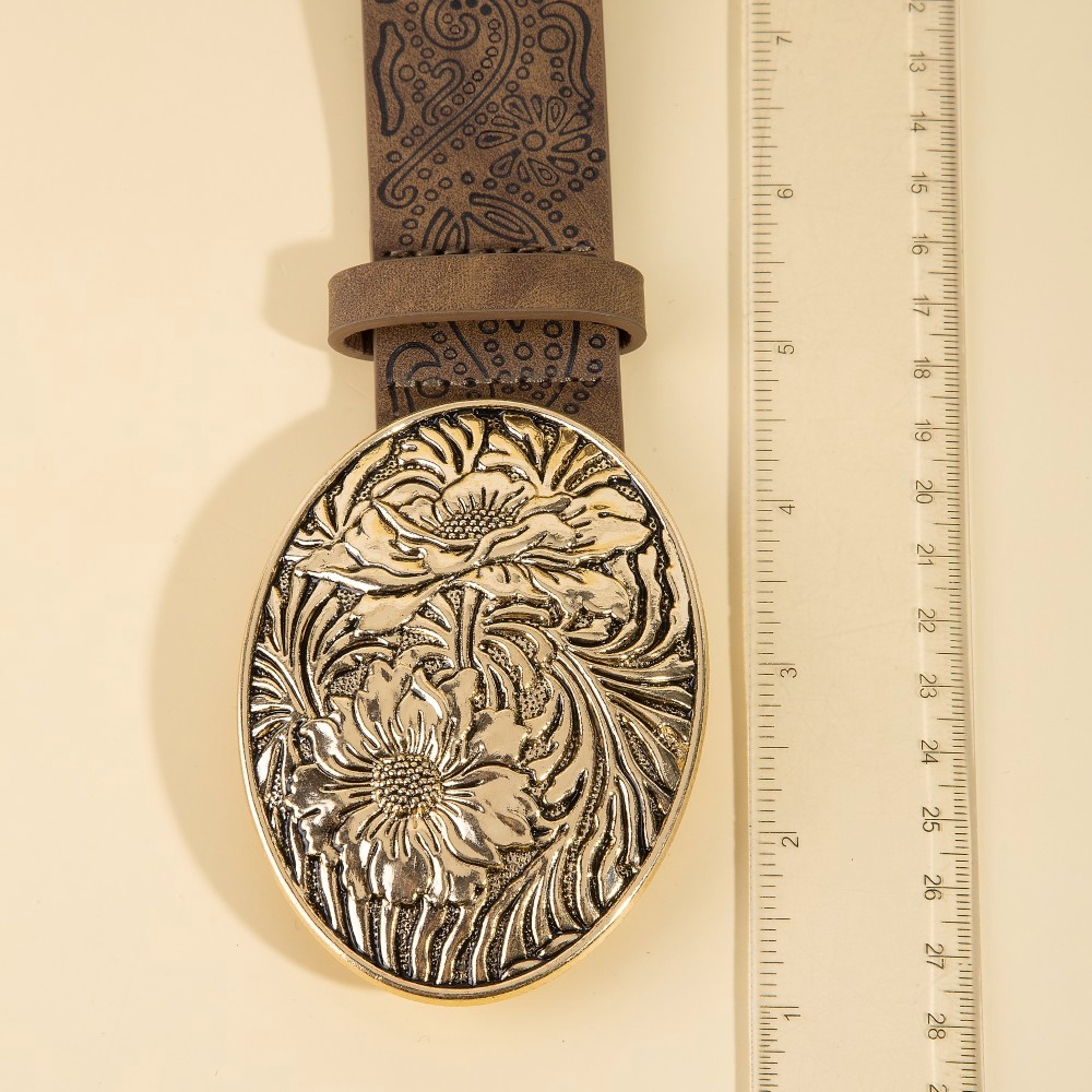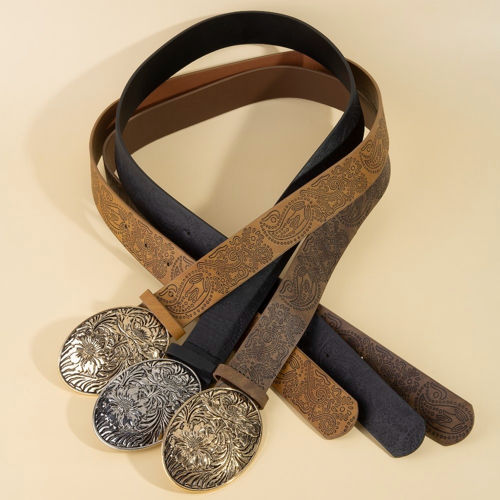 • Chic, sophisticated, and always in style, this faux leather belt evokes a captivating floral buckle paisley pattern design. Perfect for any occasion, this versatile faux leather belt will enhance any outfit you wear. Available in GDBR, SBK, GLBR and SLBR. This item is sold in packs of 1.