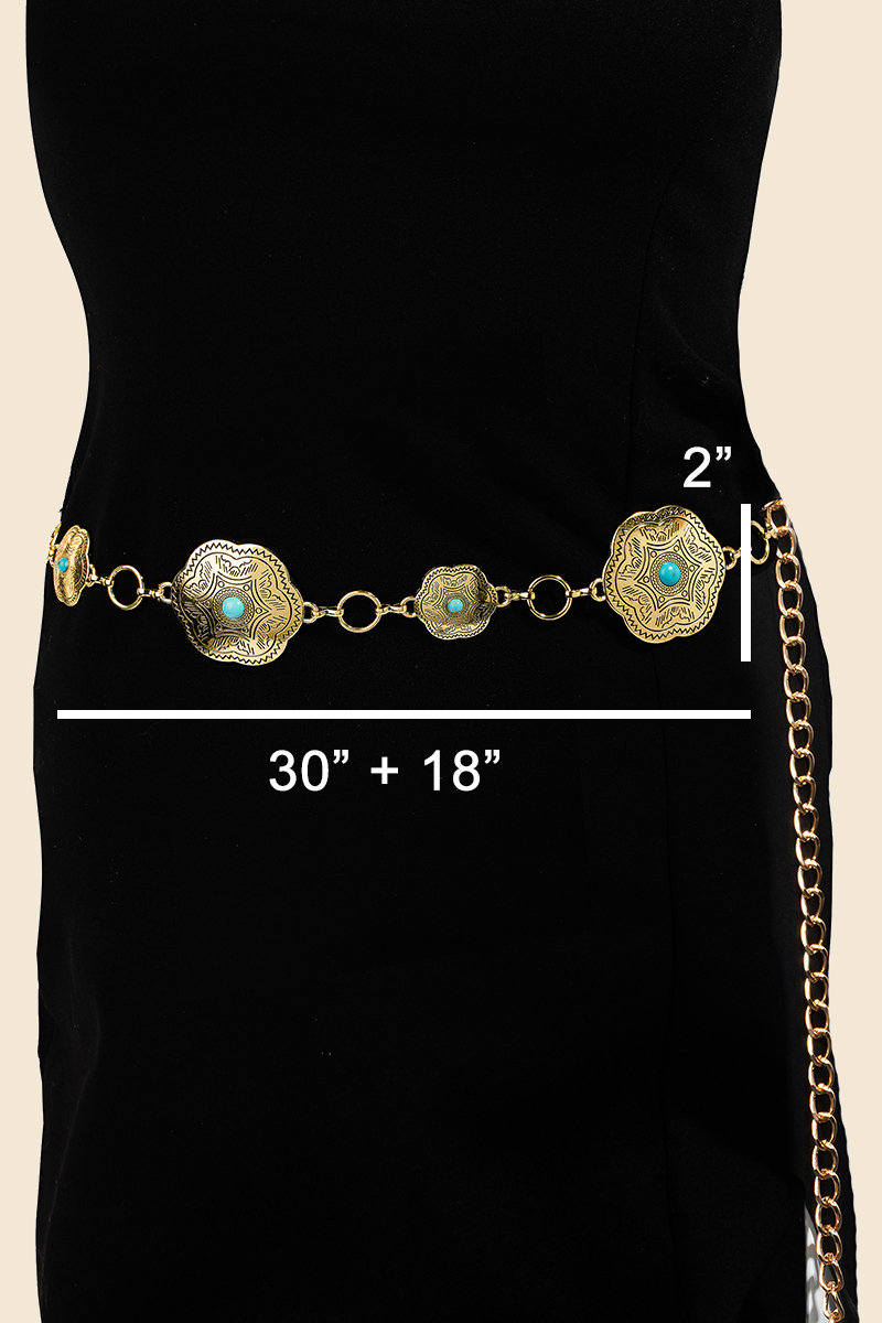 Western Turquoise Stud Floral Concho Chain Belt