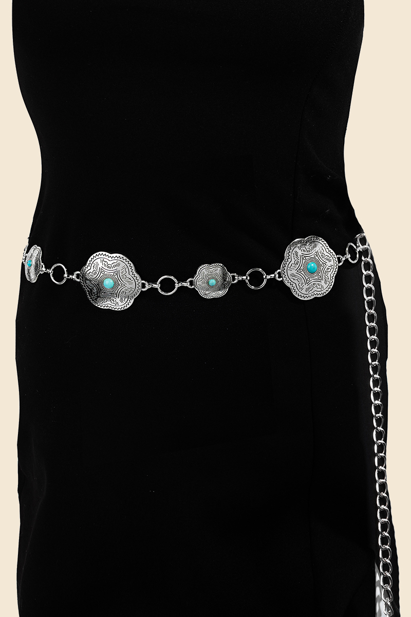 Flower Western Concho Disc Chain Belt