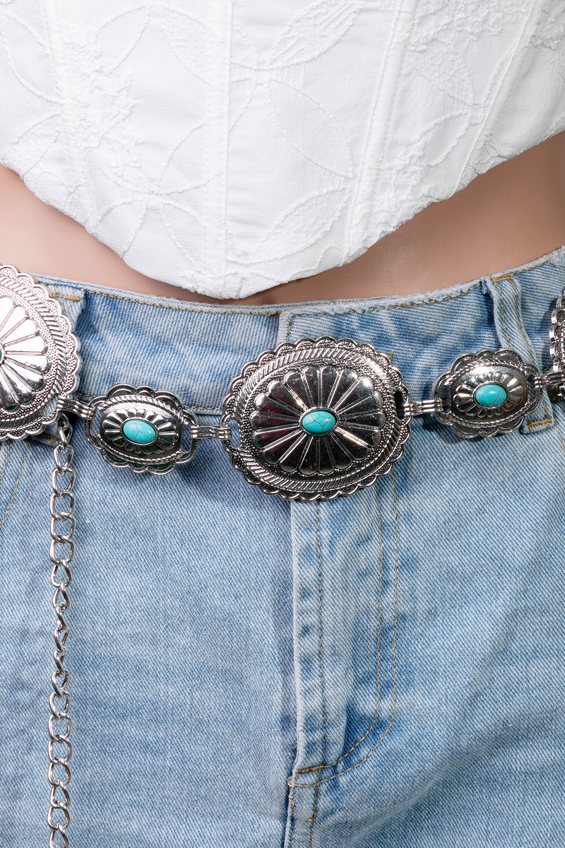 Oval Stone Stud Engraved Western Oval Chain Belt