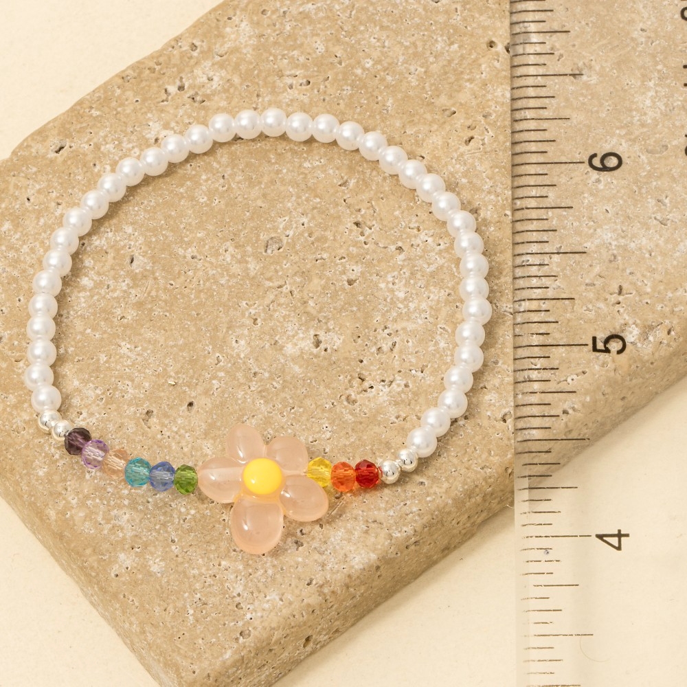 - This piece is a true showstopper, this bracelet offers a remarkable acrylic flower beaded design. A perfect addition to your wardrobe that effortlessly enhances your style. Available in MULTI. This item is sold in packs of 1.