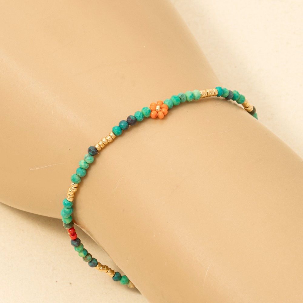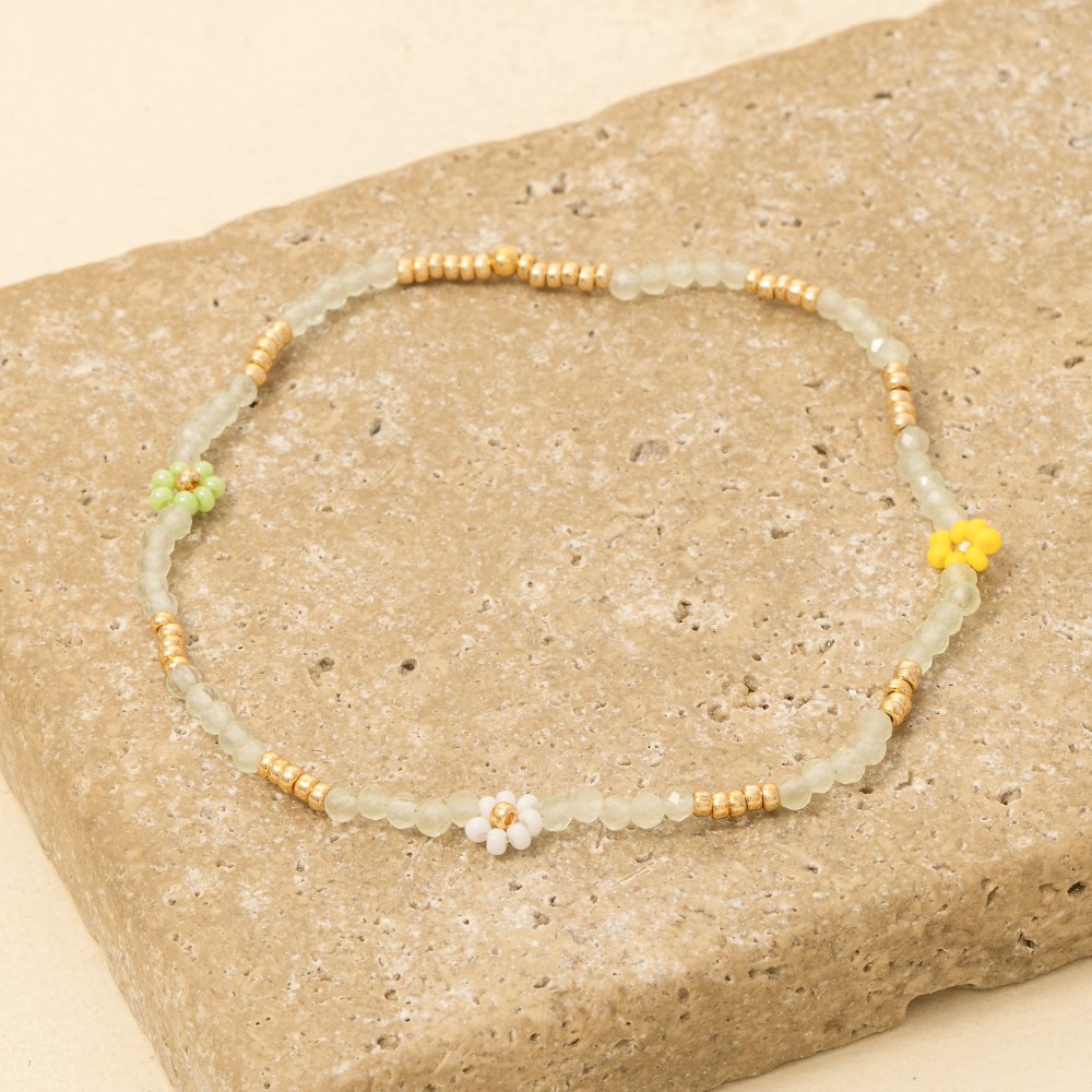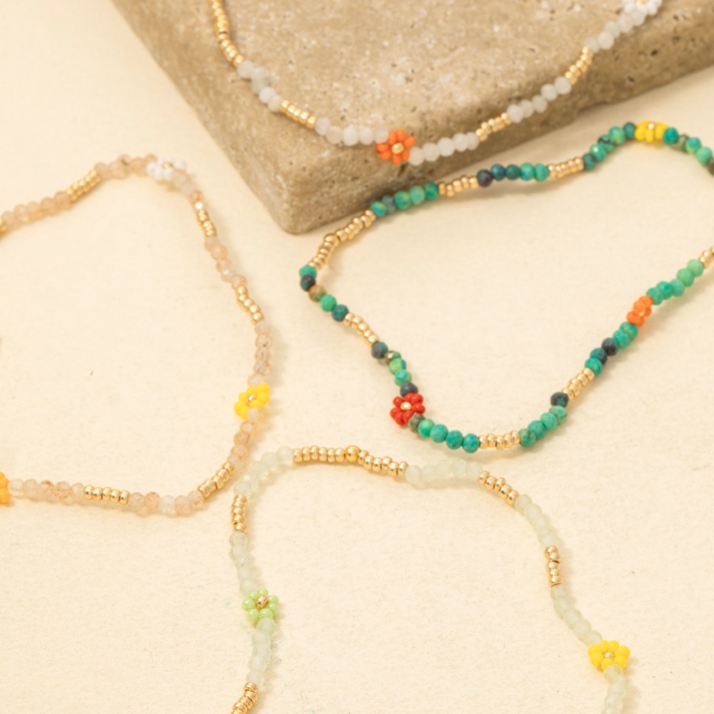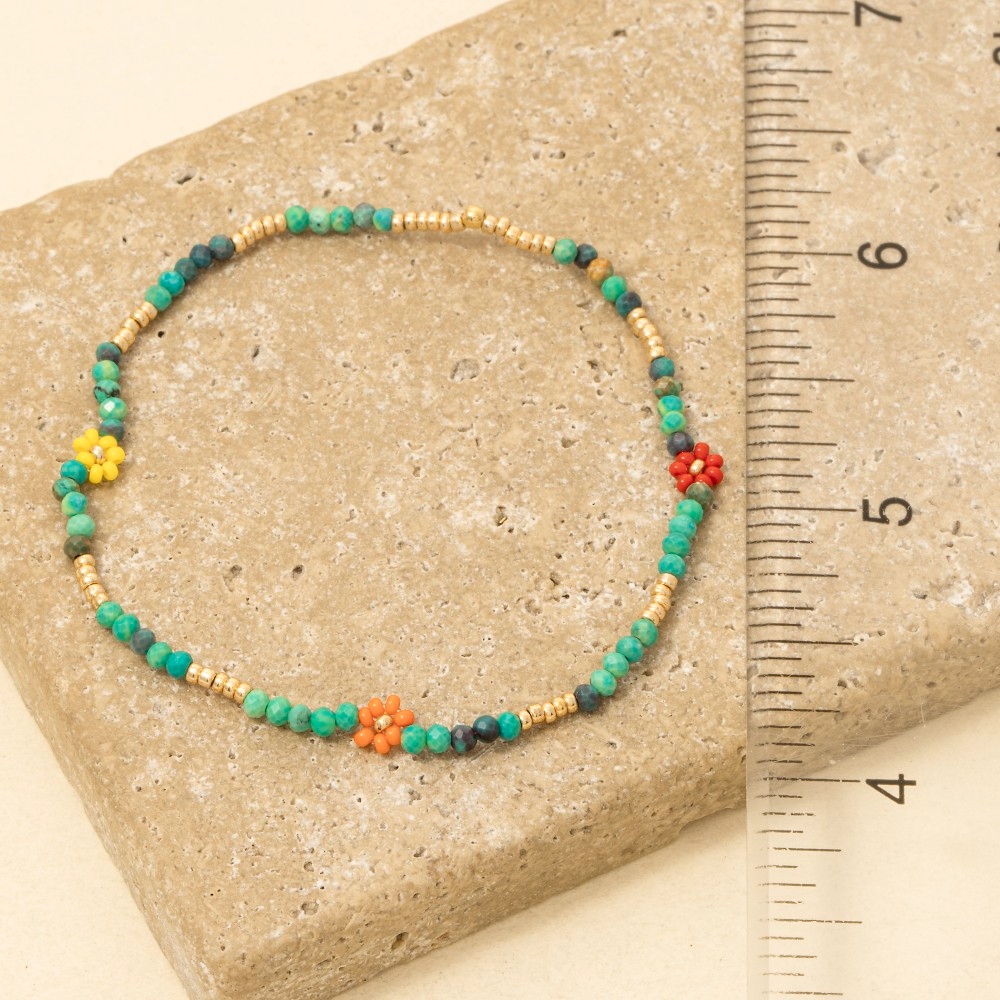 • A timeless piece that you'll wear for years to come, this bracelet radiates a sleek dainty flower beaded design. Upgrade your fashion game with this versatile bracelet, a timeless addition that complements any outfit seamlessly. Available in MI, PK, TQ, WH. This item is sold in packs of 1.