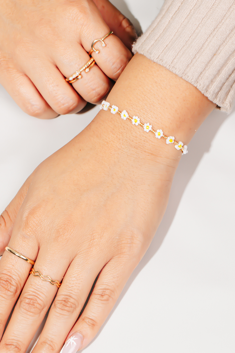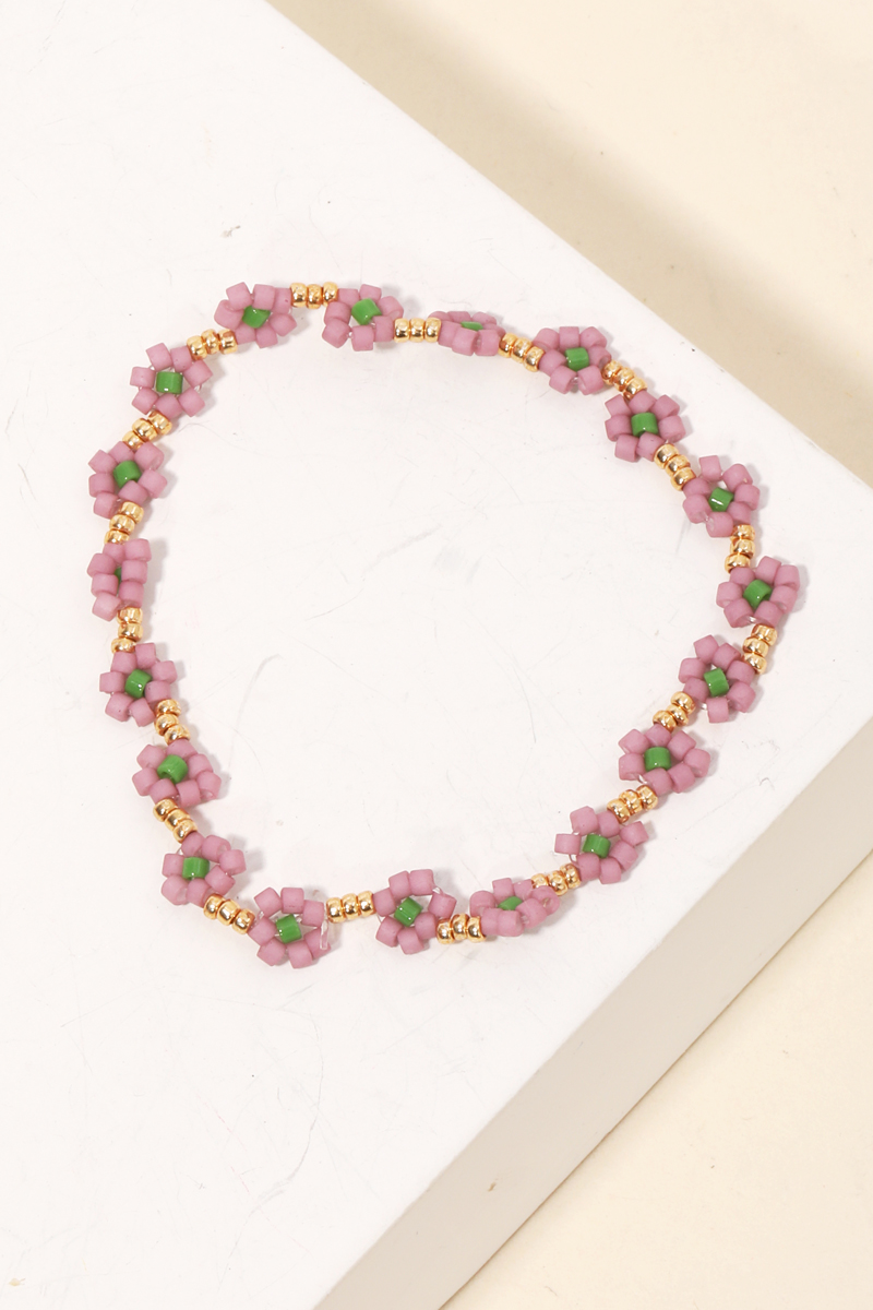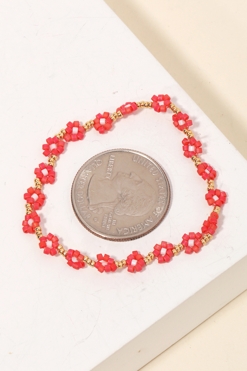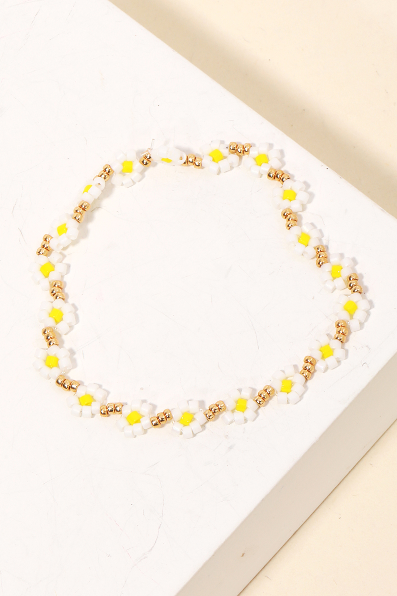 Effortlessly elevate your style, this stretch bracelet features a distinct dainty seed beaded flower design. A must-have accessory that effortlessly enhances your style, no matter the occasion. Available in CO, LV, TQ and WH. This item is sold in packs of 1.