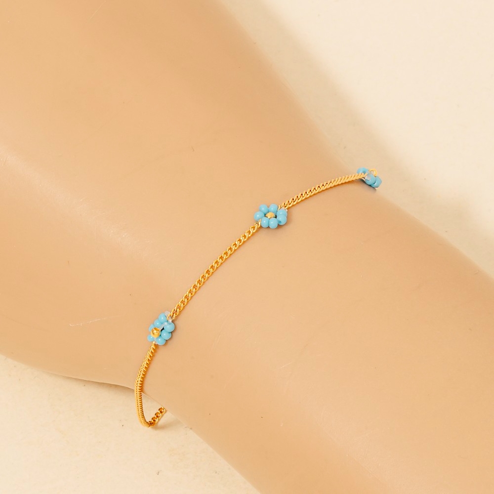 • Elevate your style with something unique and daring, this chain bracelet incorporates a remarkable glass beaded flowers dainty design. Discover a new level of fashion versatility as this chain bracelet effortlessly elevates the allure of your attire. Available in BK, GN, PK, TQ, WH. This item is sold in packs of 1.
