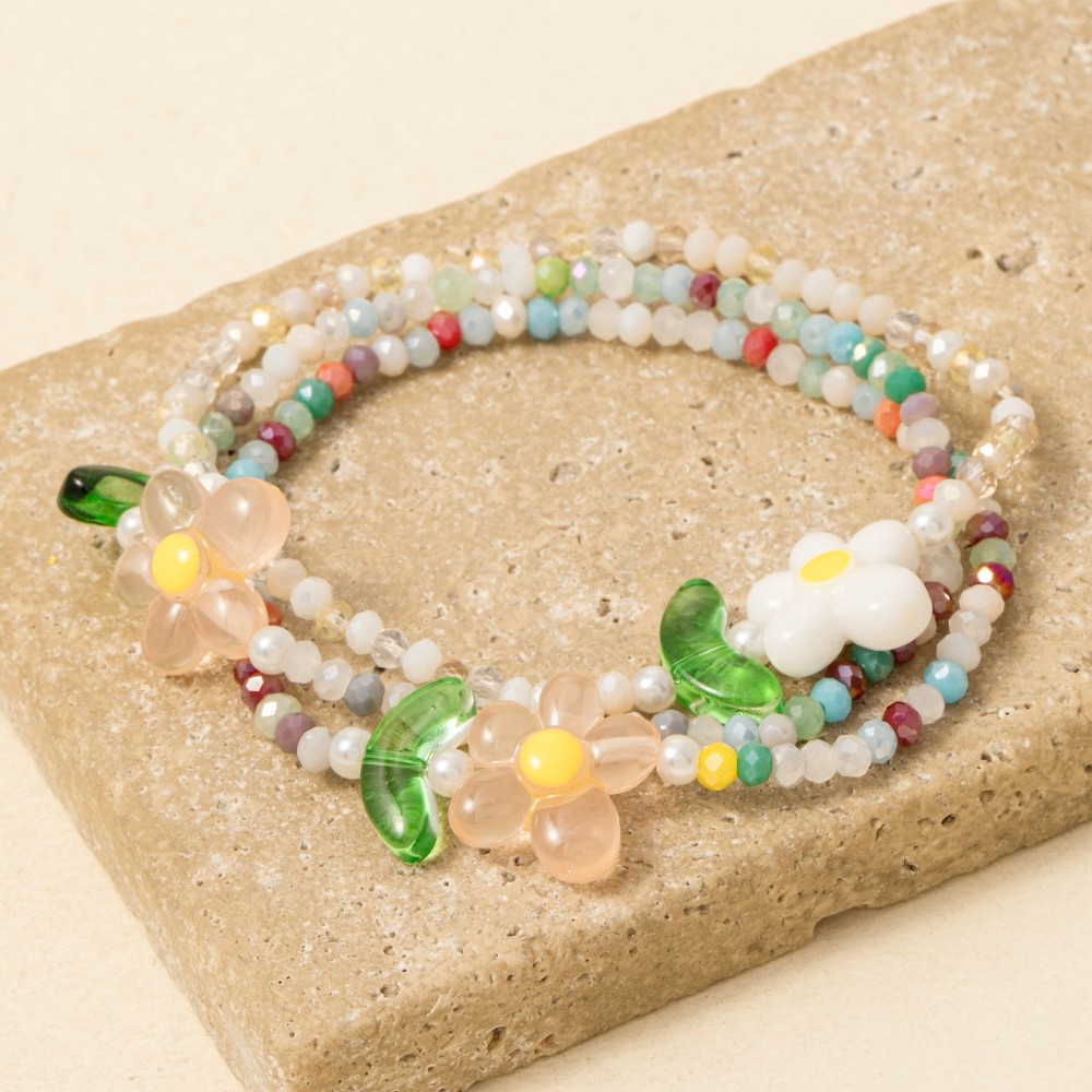 • Add a touch of elegance and glamour to your look, this bracelet adds a distinctive multi flower beads triple set design. Elevate your everyday style with this versatile bracelet, a simple yet impactful addition to your fashion repertoire. Available in MULTI. This item is sold in packs of 1.