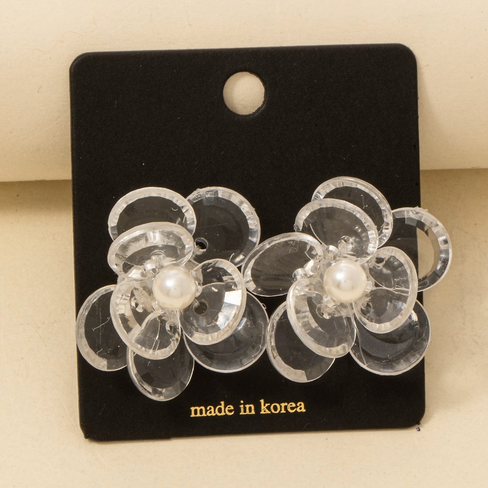 • The perfect way to add some sparkle to your outfit, this pair of stud earrings showcases an alluring clear layered acrylic flower and pearl bead design. Perfect for dressing up your favorite outfit, this pair of stud earrings is a must-have. Available in G. This item is sold in packs of 1.