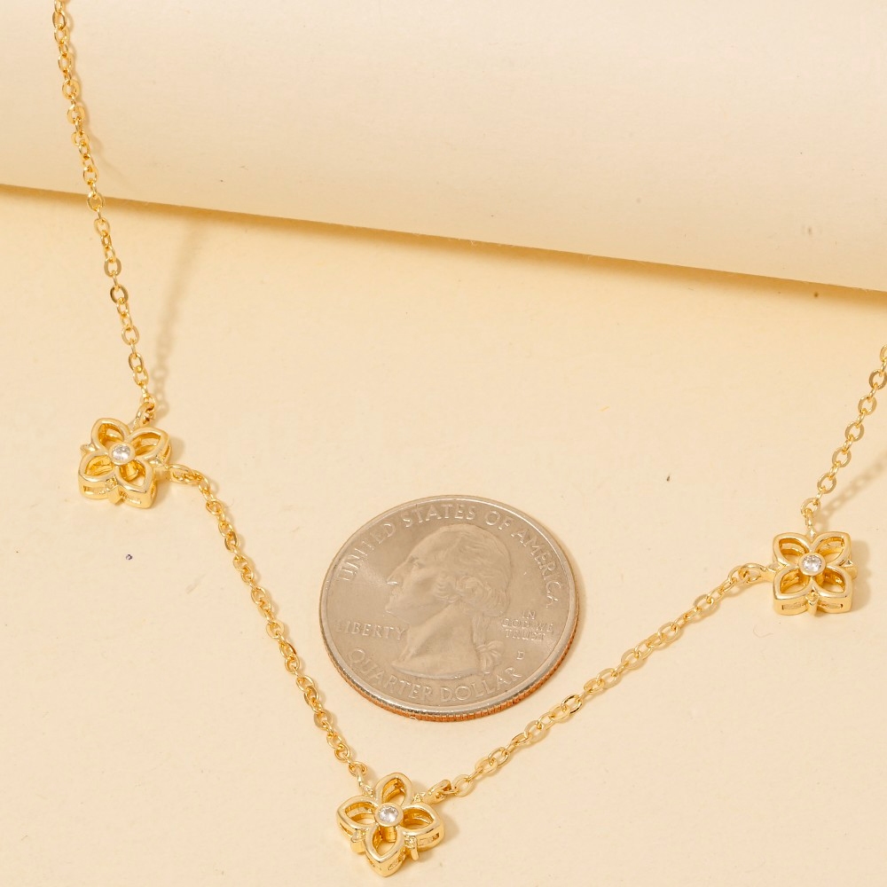 • Perfect for any fashion-forward individual, this chain necklace comes with a special cubic zirconia triple flower station design. A must-have chain necklace that effortlessly enhances your style, no matter the occasion. Available in GDCRY, RHCRY. This item is sold in packs of 1.