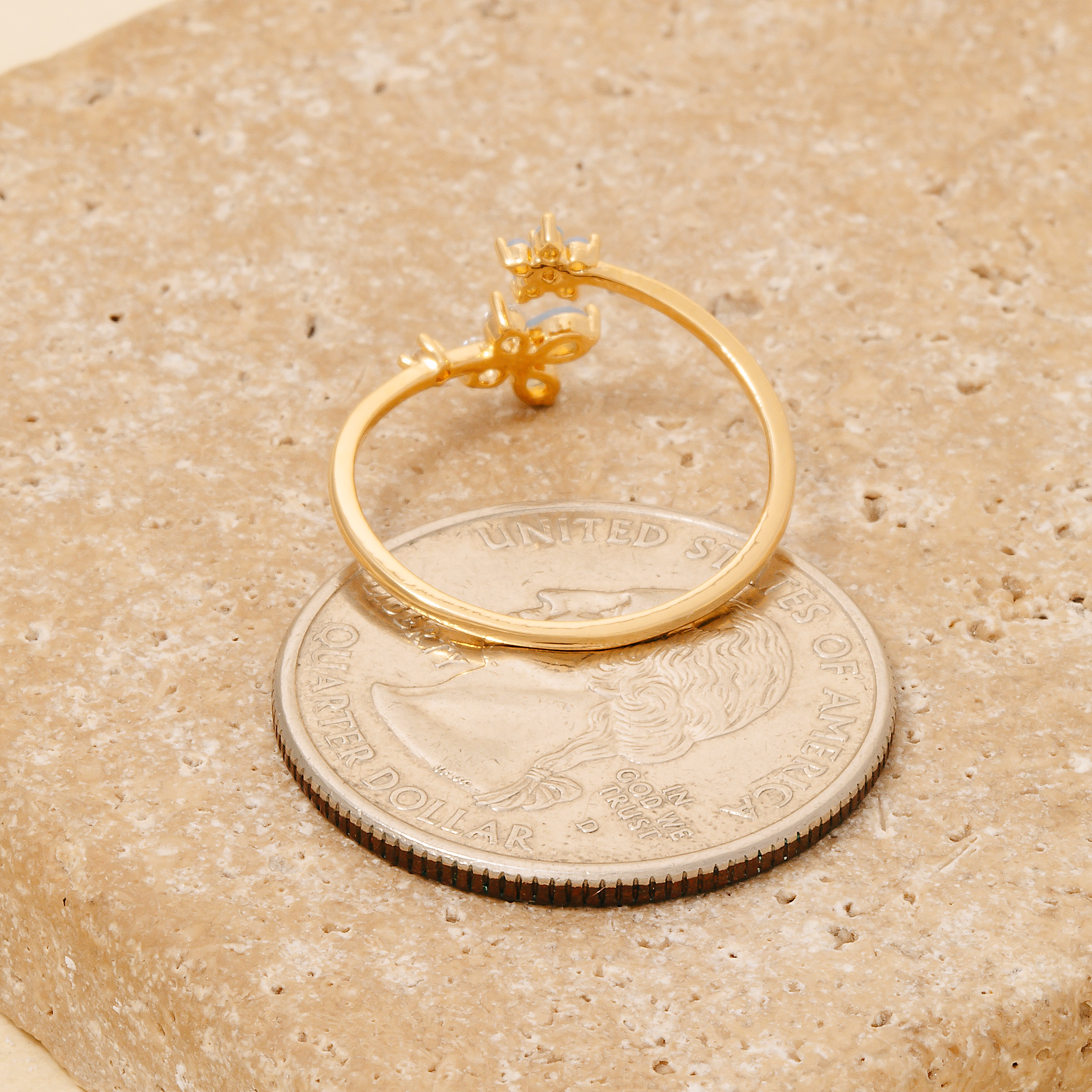 Gold Dipped Cz Flower Bow Ribbon Ring