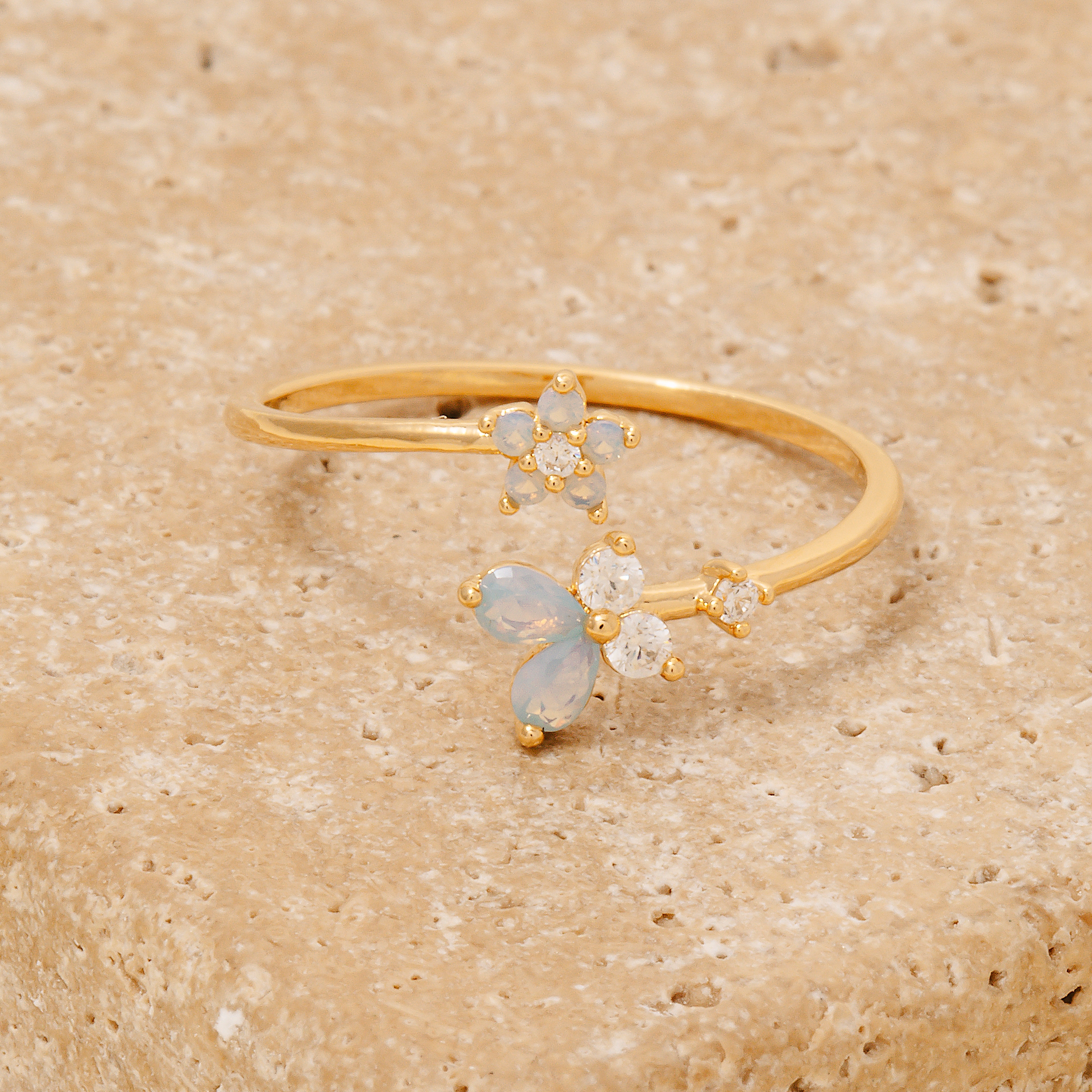 Gold Dipped Cz Moon Star And Butterfly Ring