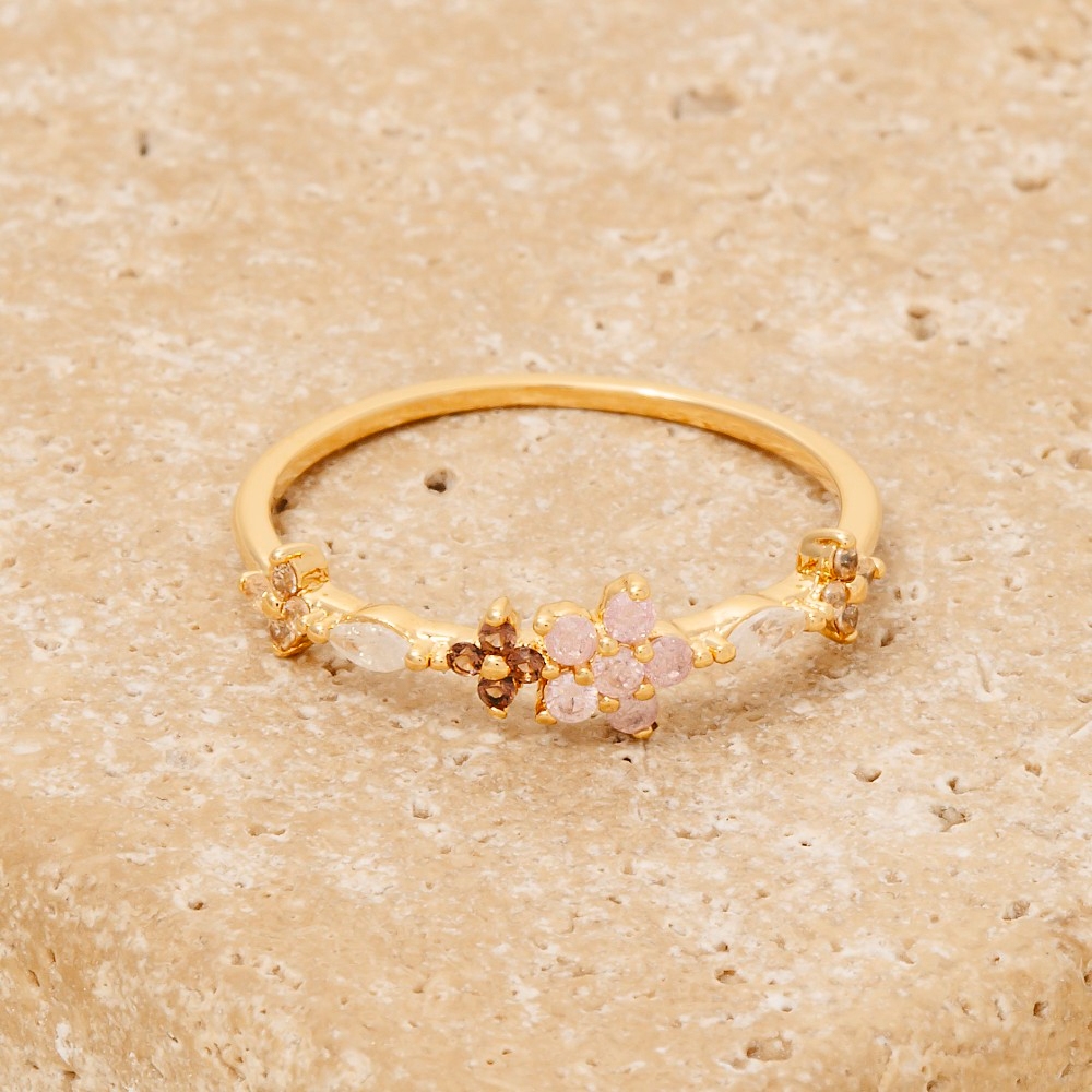Gold Dipped Cz Wavy Flower Studded Ring