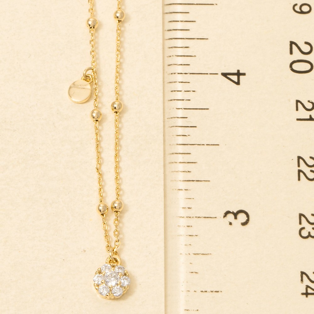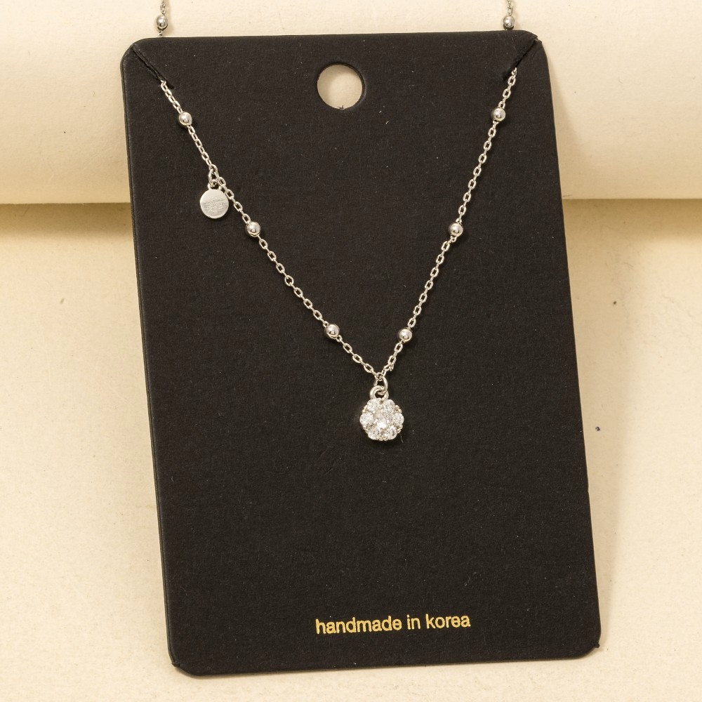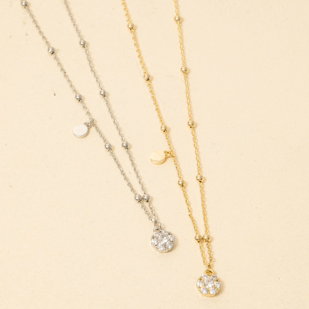 The perfect way to add some sparkle to your outfit, this necklace encompasses a grand cz studded flower disc pendant design. Discover a new level of fashion versatility as this necklace effortlessly elevates the allure of your attire. Available in G, S. This item is sold in packs of 1.