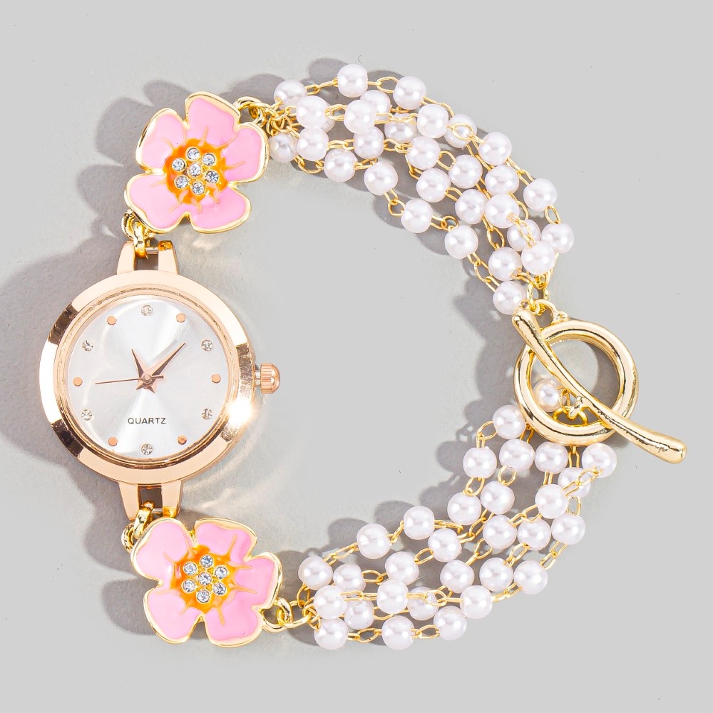• This piece is both elegant and versatile, this bracelet embodies a sophisticated double flower detail chain beads watch design. A stylish bracelet that's perfect for complementing your favorite outfit. This item is sold in packs of 1.