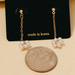 Pearl Beaded Flower Dangle Chain Earrings