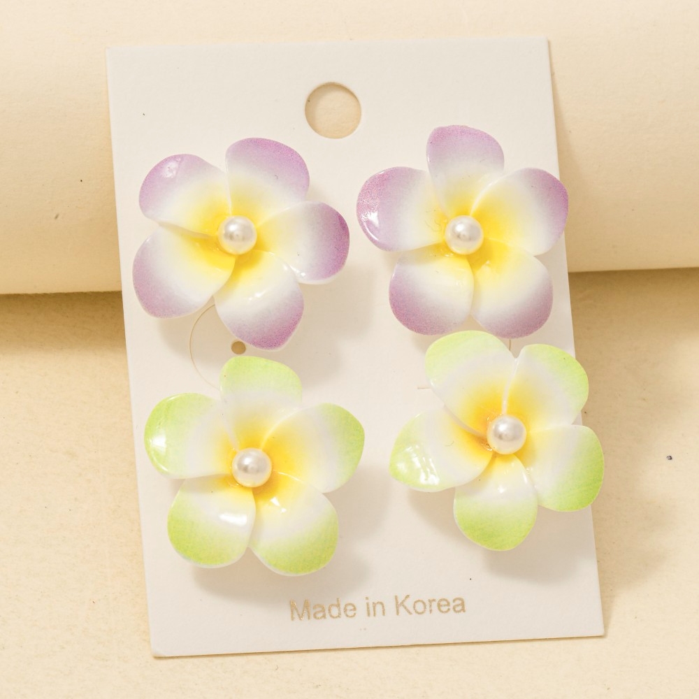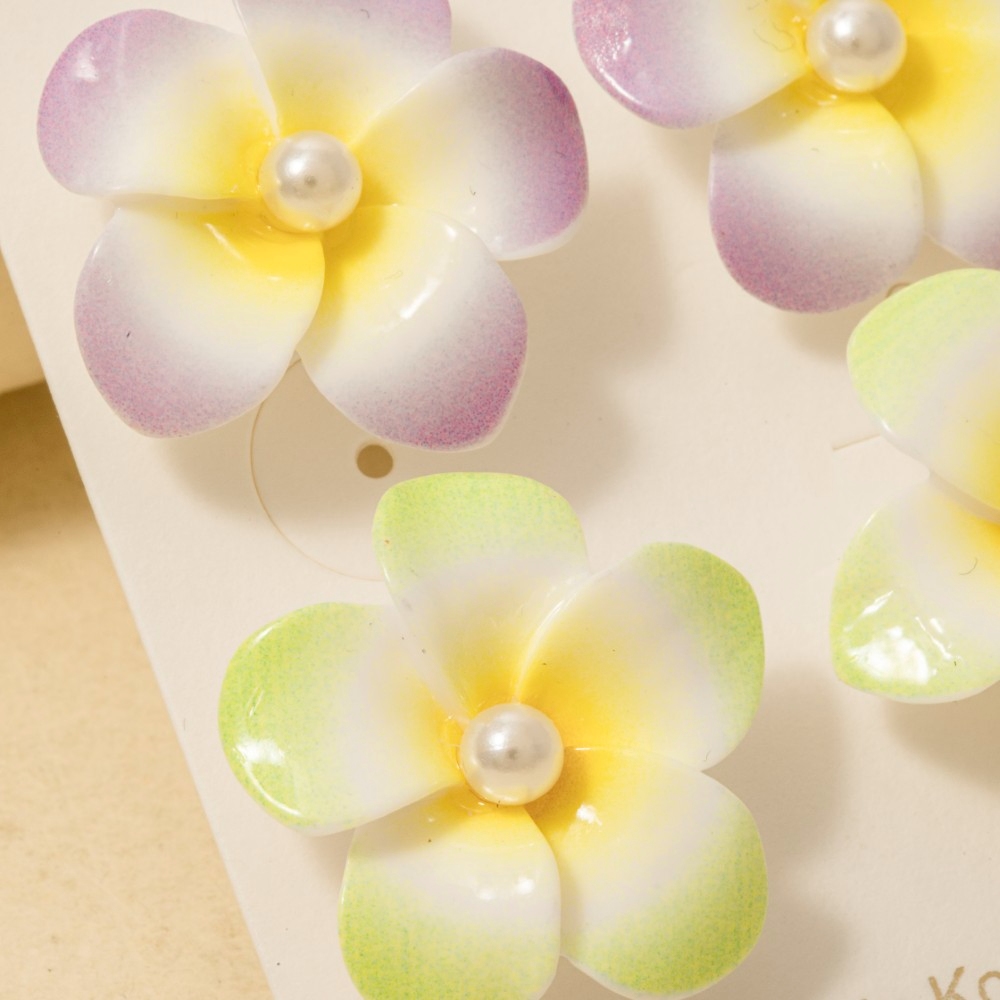 Purple And Yellow Acrylic Flower Stud Earrings Set