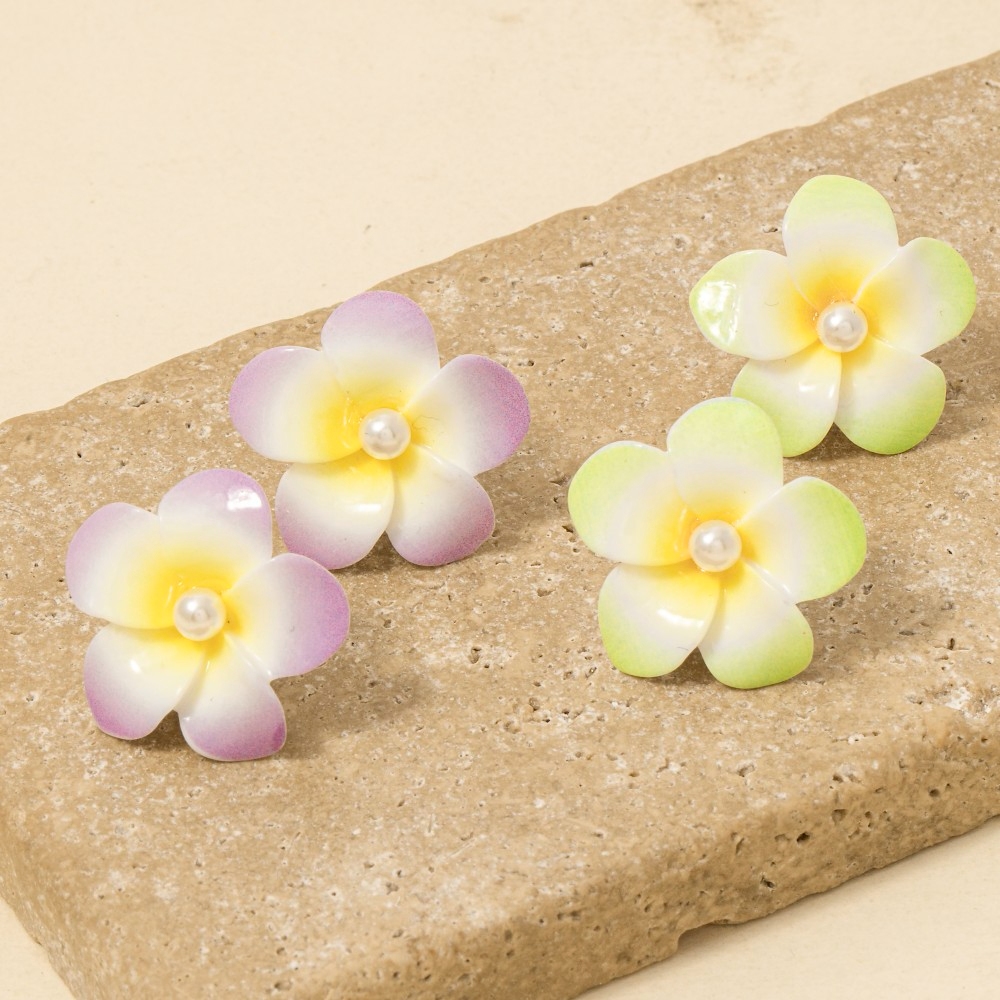• A true work of art, this pair of stud earrings shows off a distinctive acrylic flower and pearl set design. Elevate your fashion IQ with this versatile pair of stud earrings, designed to seamlessly integrate into any style profile. This item is sold in packs of 1.