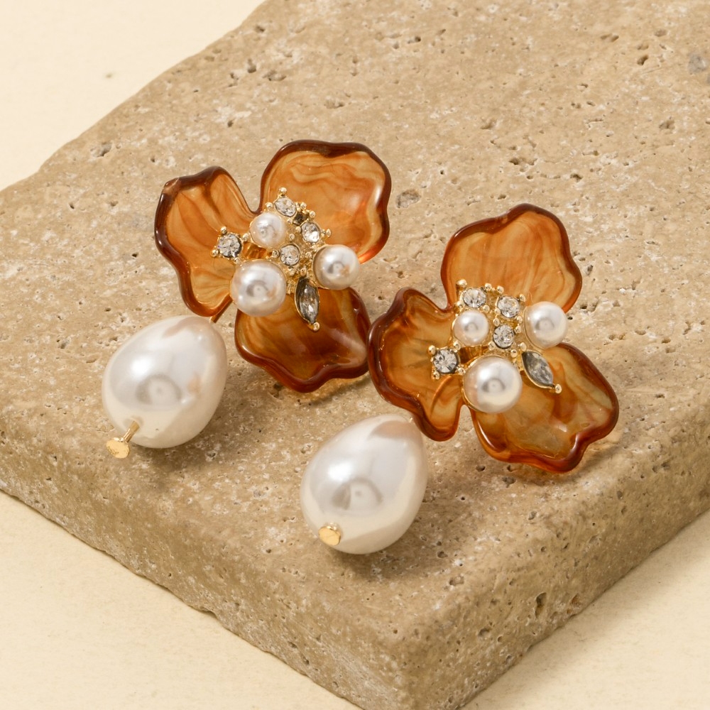• Elevate any look, this pair of drop earrings introduces an exceptional acrylic flower pearl design. Infuse elegance into your daily wardrobe with the versatile charm of this must-have pair of drop earrings. Available in GDBRW, GDCRM. This item is sold in packs of 1.