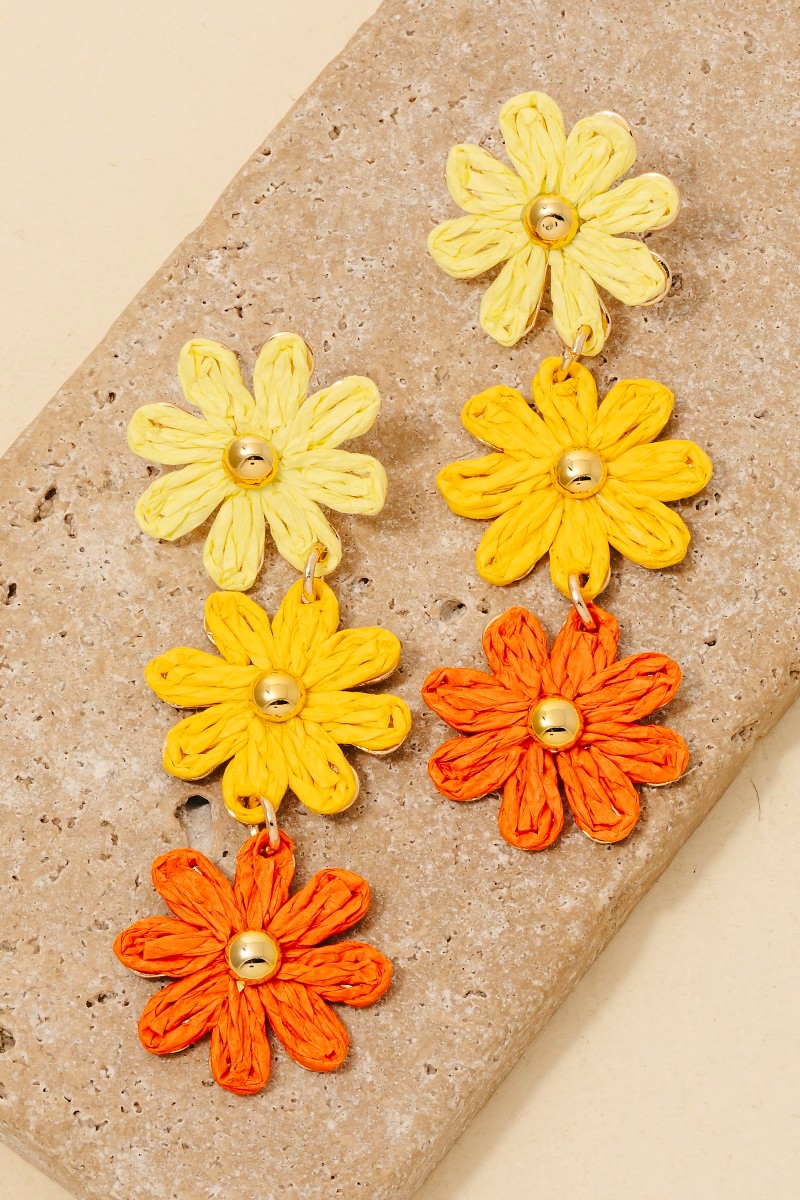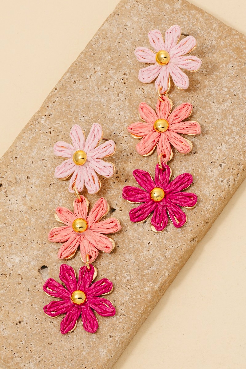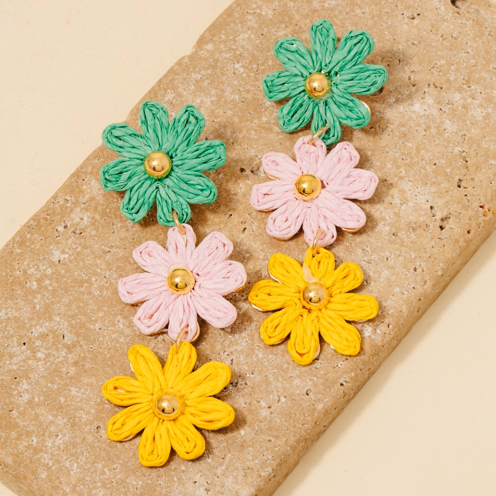 This pair of dangle earrings showcases a unique colorful braided flower chain style. Embark on a journey of sartorial refinement as this pair of dangle earrings effortlessly complements your fashion sense.