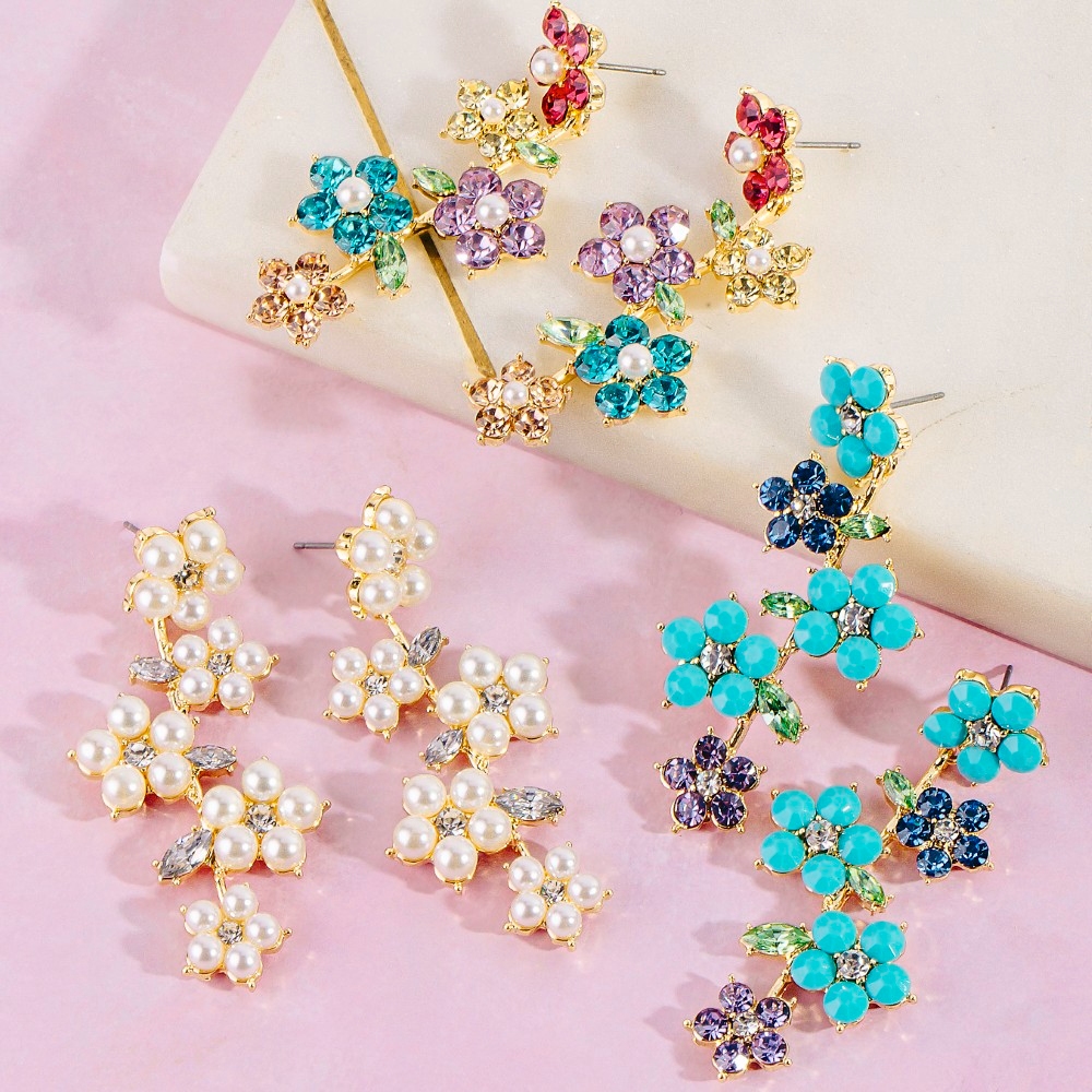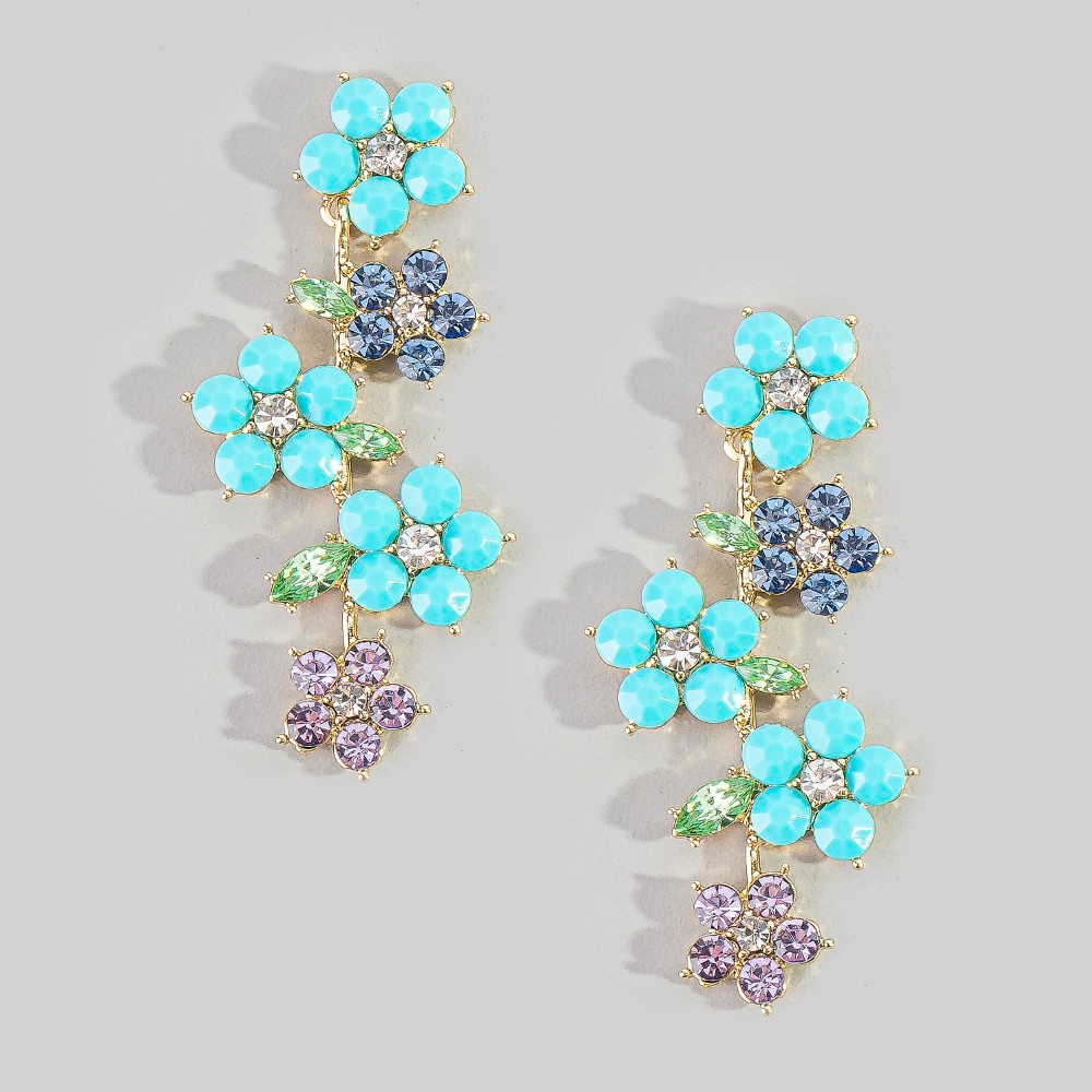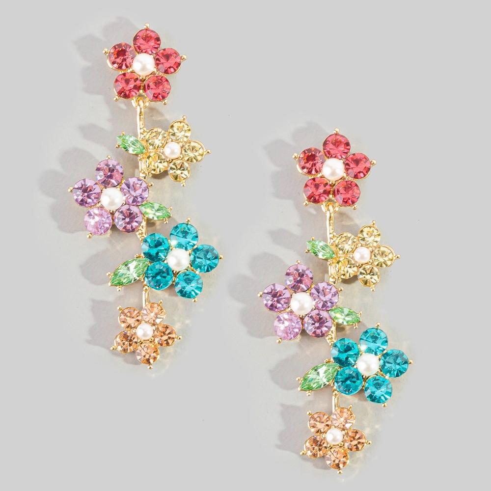 • Effortlessly chic and sophisticated, this pair of dangle earrings showcases a breathtaking colorful studded flowers design. Add some personality to your outfit with this stylish pair of dangle earrings. Available in MUG, PLG, TQG. This item is sold in packs of 1.