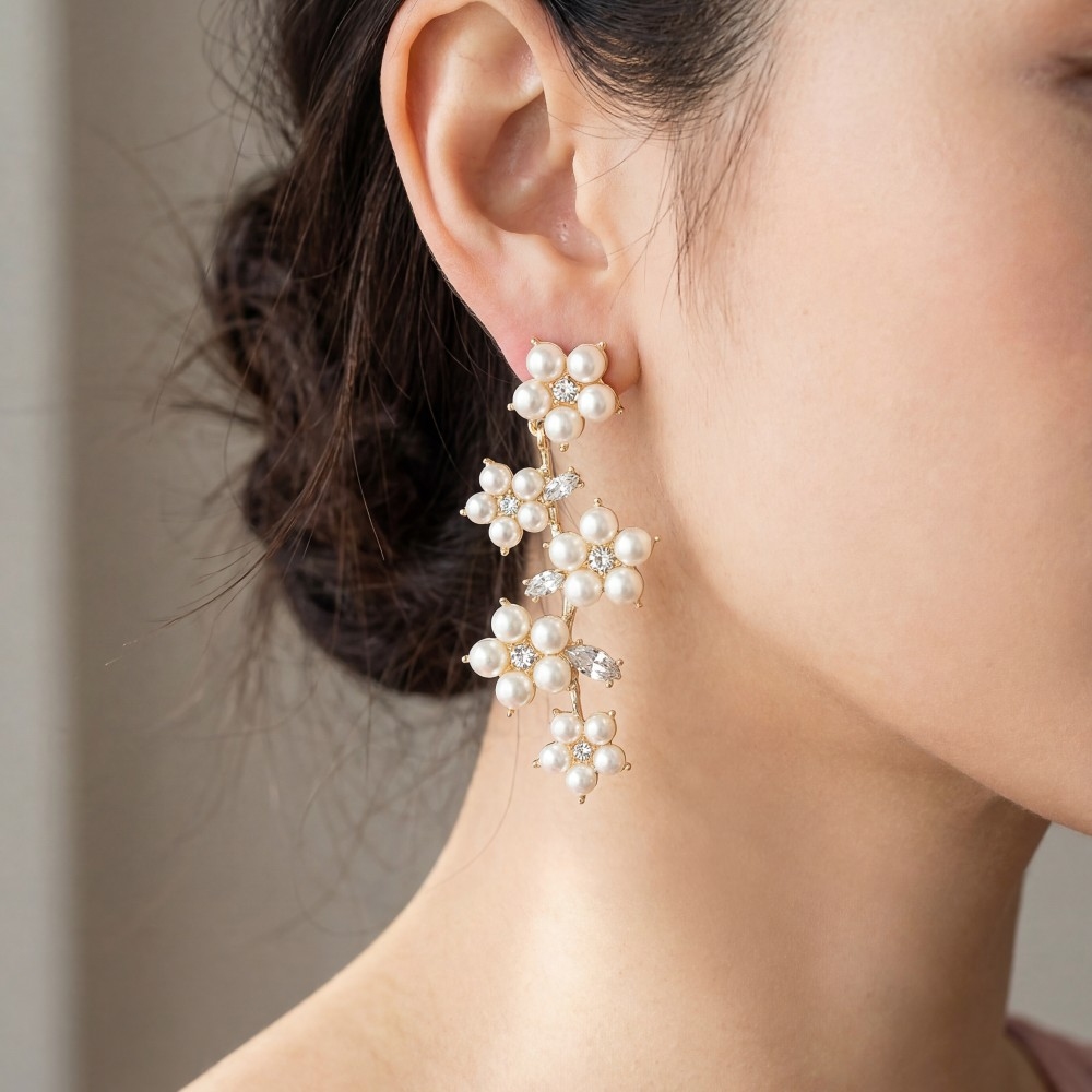 Pearl Flower Earrings Set