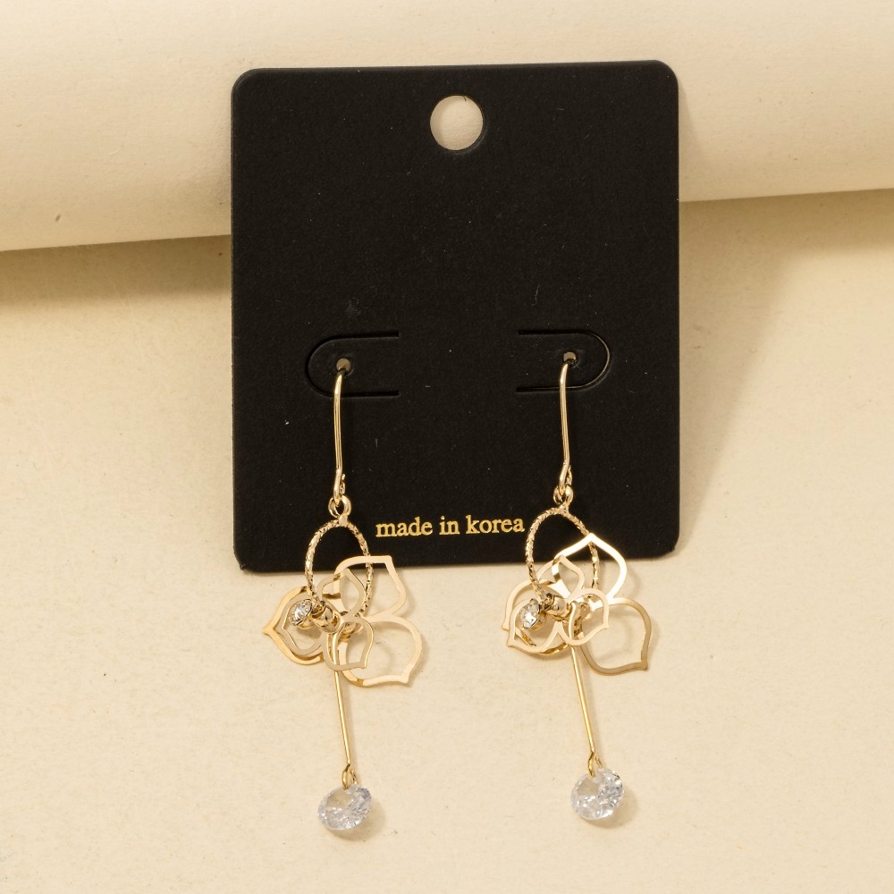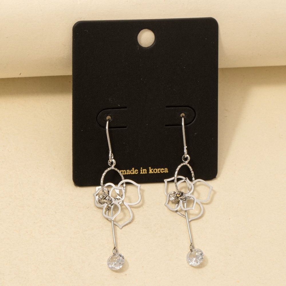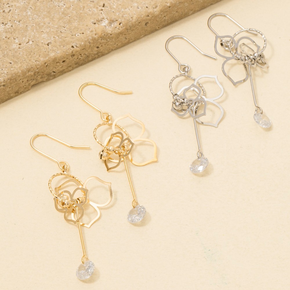 • Chic, sophisticated, and always in style, this pair of drop earrings boasts a magnificent cz flower cutout design. Add some personality to your outfit with this stylish pair of drop earrings. Available in G, S. This item is sold in packs of 1.