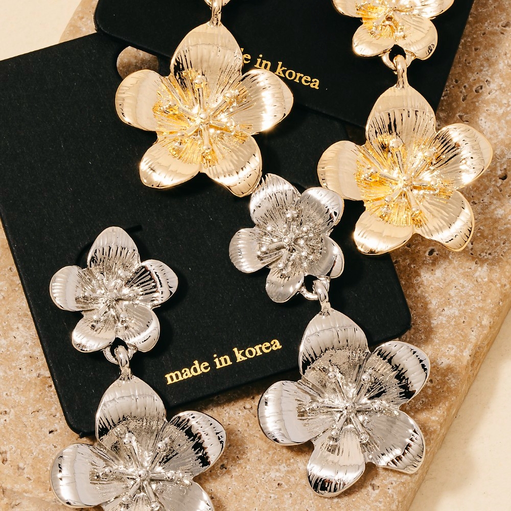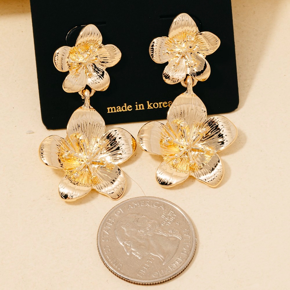 • A contemporary masterpiece, this pair of dangle earrings radiates a sleek double metallic flower design. Achieve a perfect blend of style and sophistication with this versatile pair of dangle earrings, a fashion-forward choice for any occasion. Available in G, S. This item is sold in packs of 1.