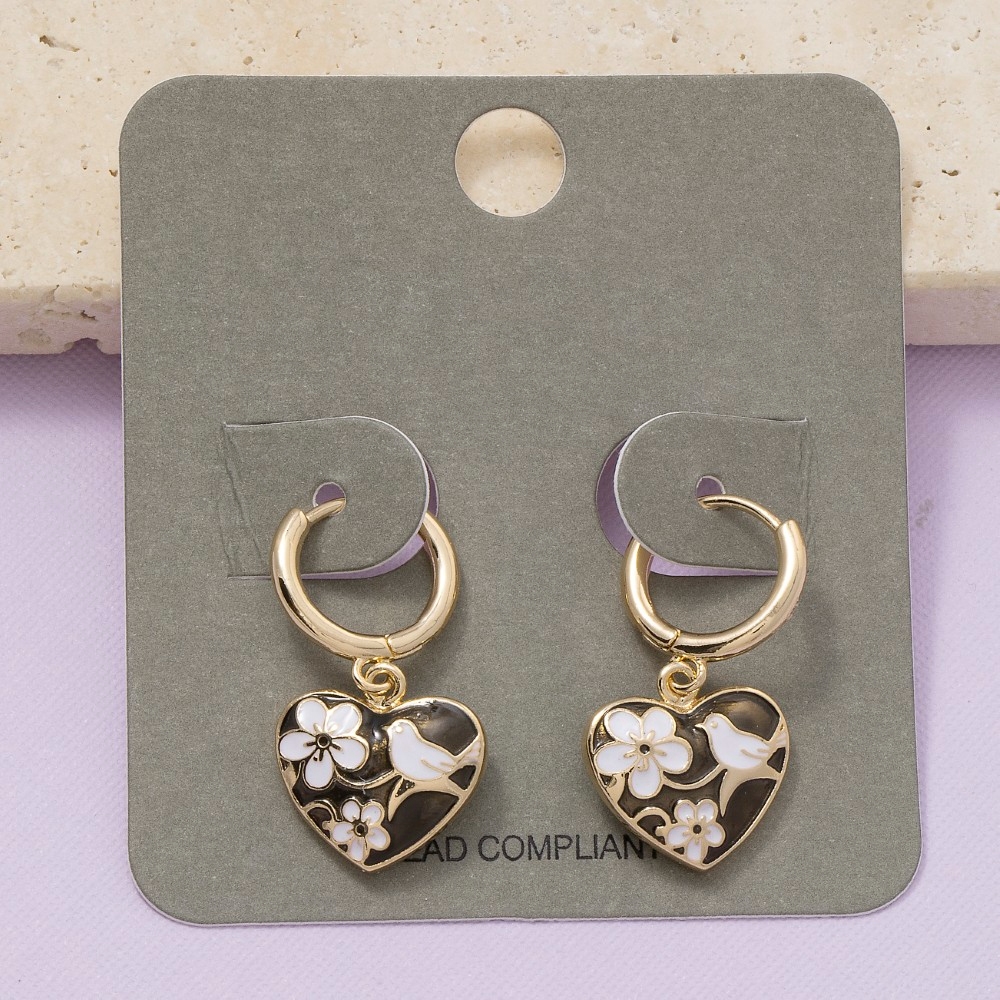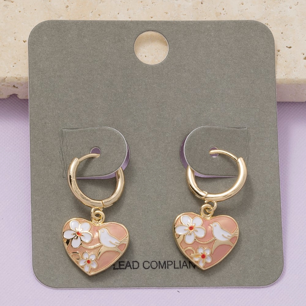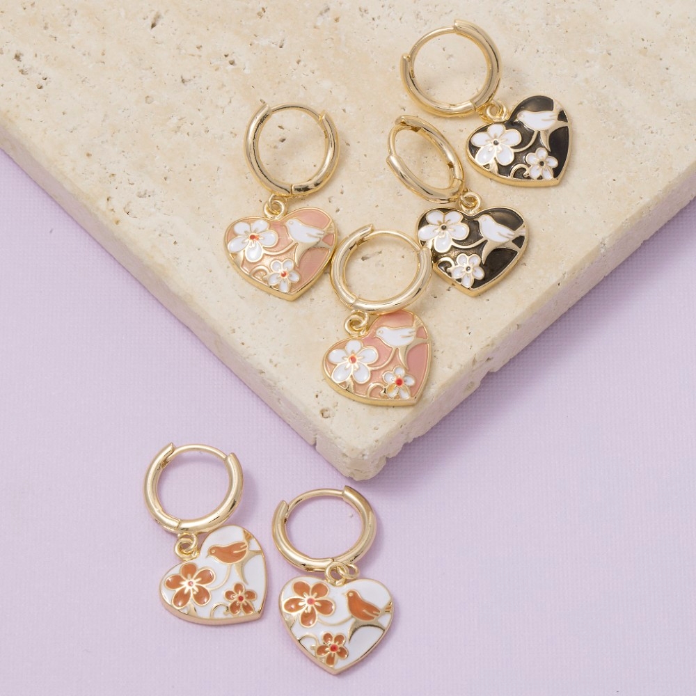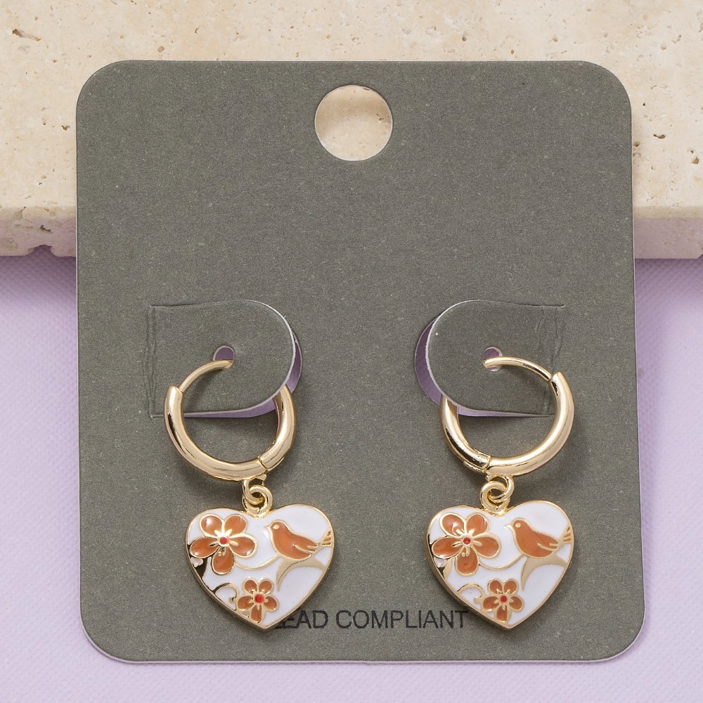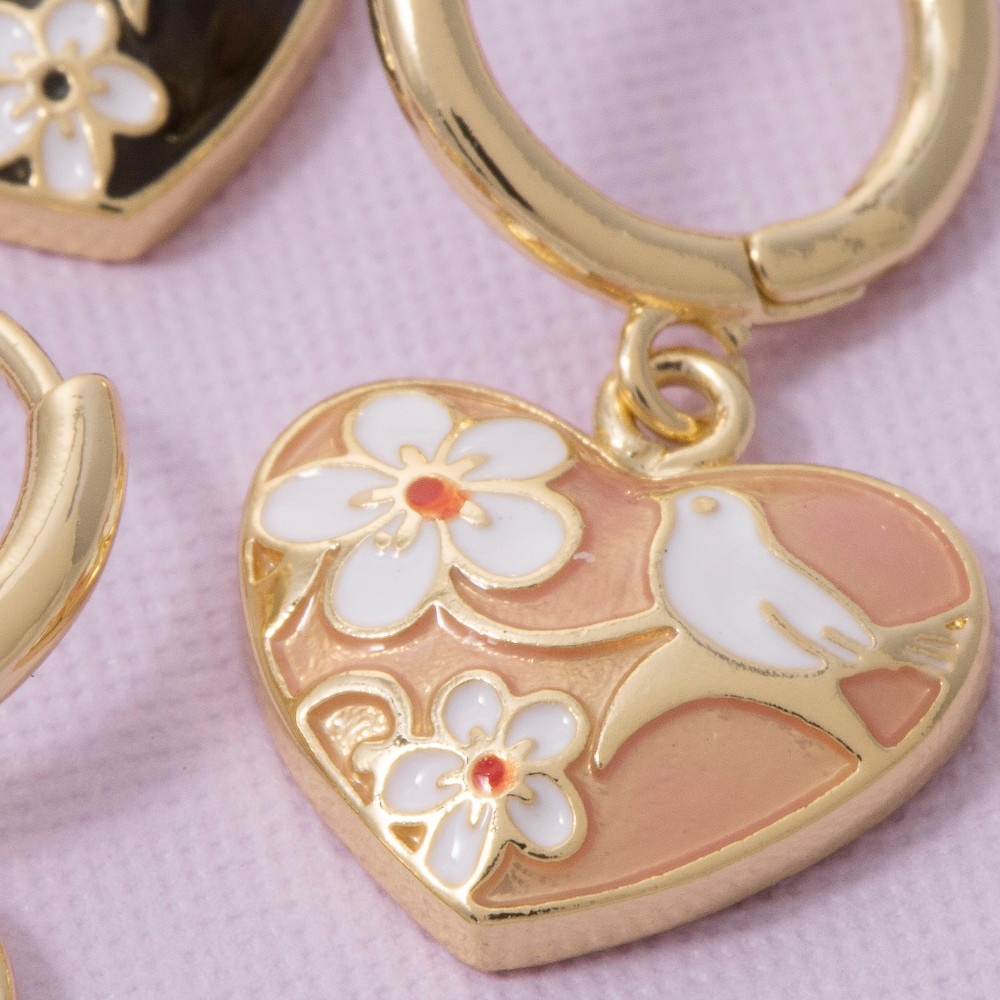 Sleek and modern, this pair of hoop earrings introduces an exceptional floral ceramic heart charm design. Discover the magic of accessorizing with this versatile pair of hoop earrings, effortlessly upgrading the style quotient of any outfit. Available in GDBNW, GDMIV, GDMPK. This item is sold in packs of 1.