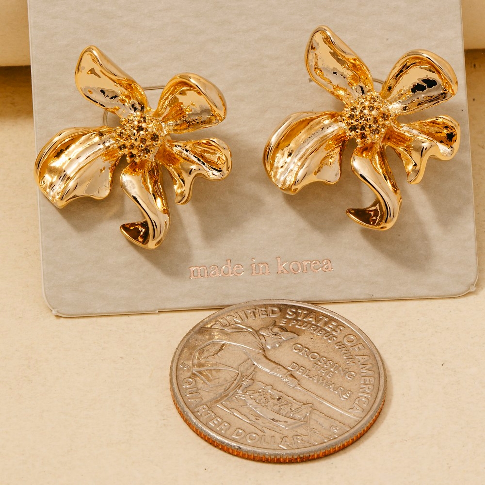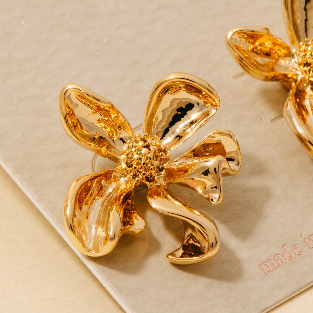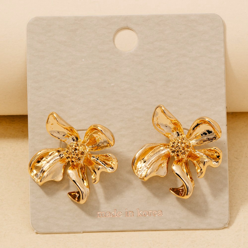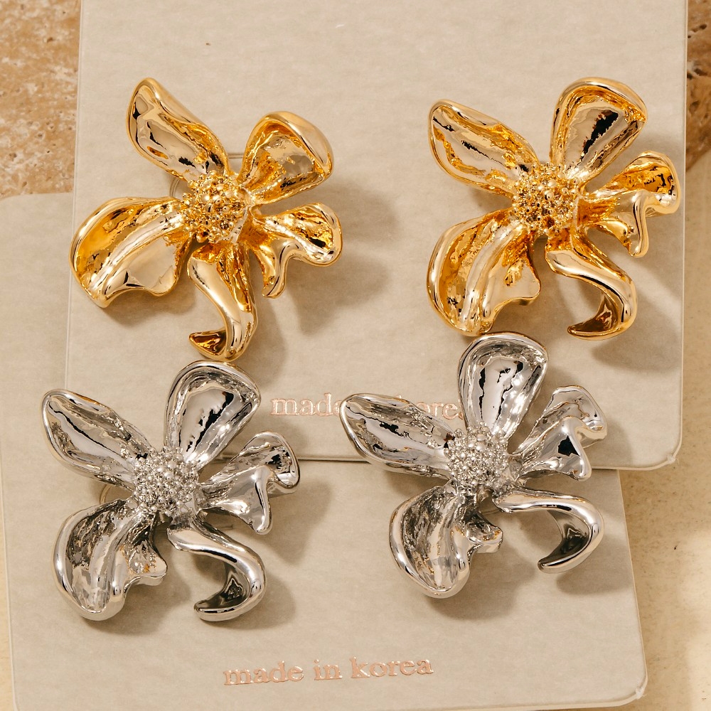 - Perfectly polished and endlessly versatile, this pair of stud earrings comes with a special metallic flower design. This pair of stud earrings is the perfect way to add a touch of elegance to any outfit. Available in G, S. This item is sold in packs of 1.