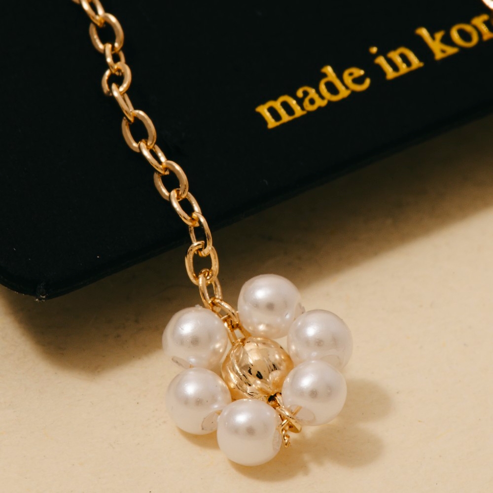 Effortlessly elevate your outfit, this pair of earrings evokes a captivating pearl beaded flower dangle chain design. Elevate your style effortlessly with this versatile pair of earrings, enhancing the appeal of any ensemble. Available in G. This item is sold in packs of 1.