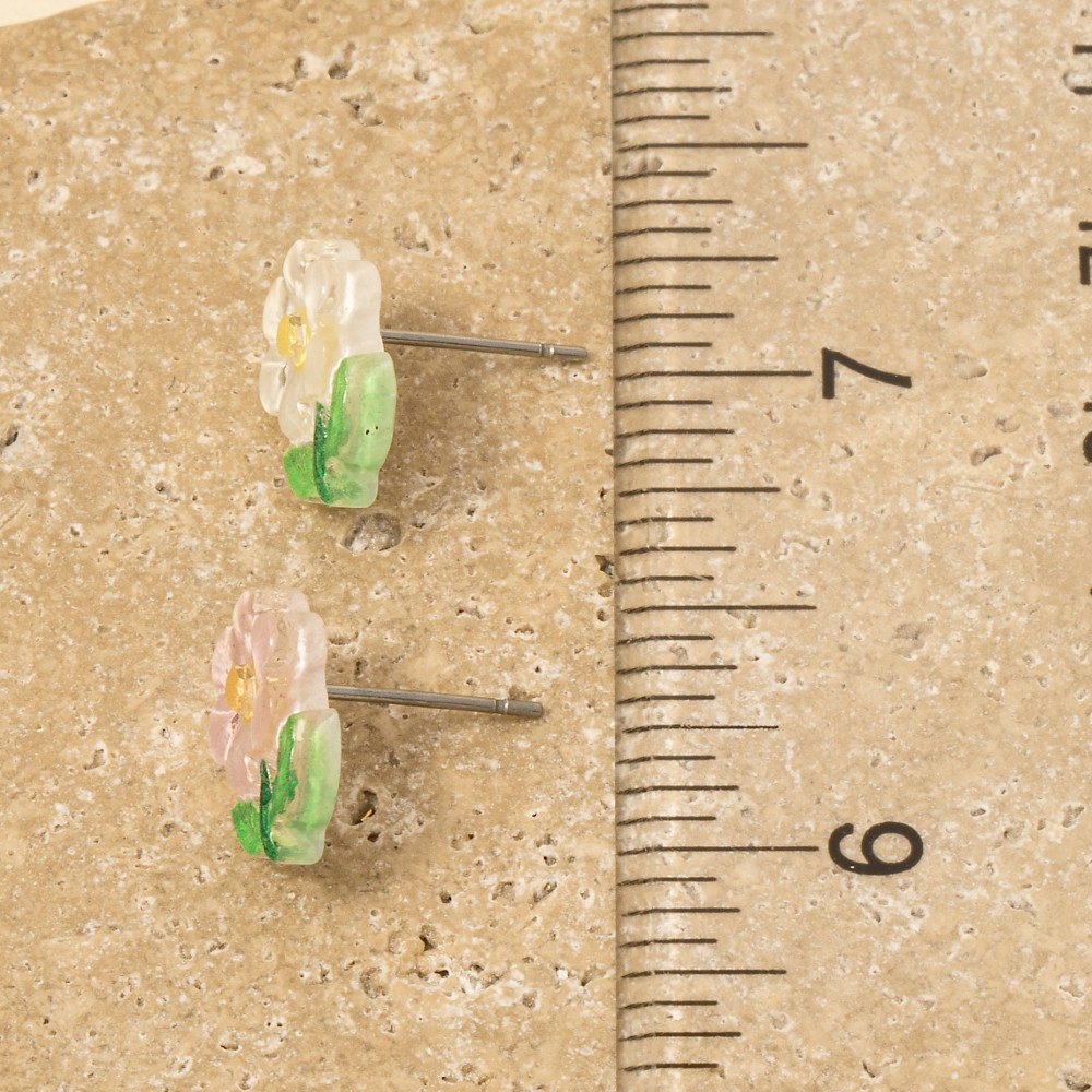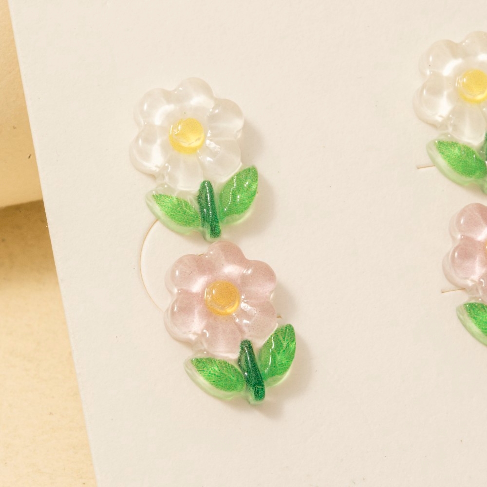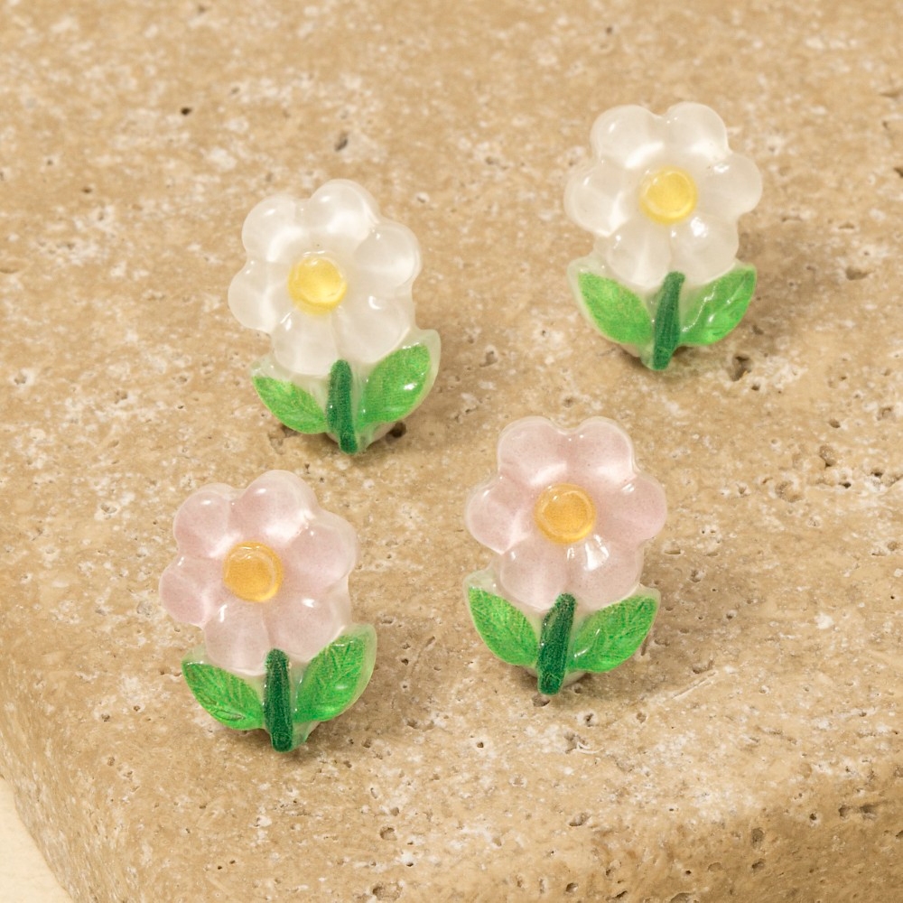 • Make a statement, this pair of stud earrings features a distinct pink and white acrylic flower set design. A stylish pair of stud earrings that's perfect for complementing your favorite outfit. This item is sold in packs of 1.