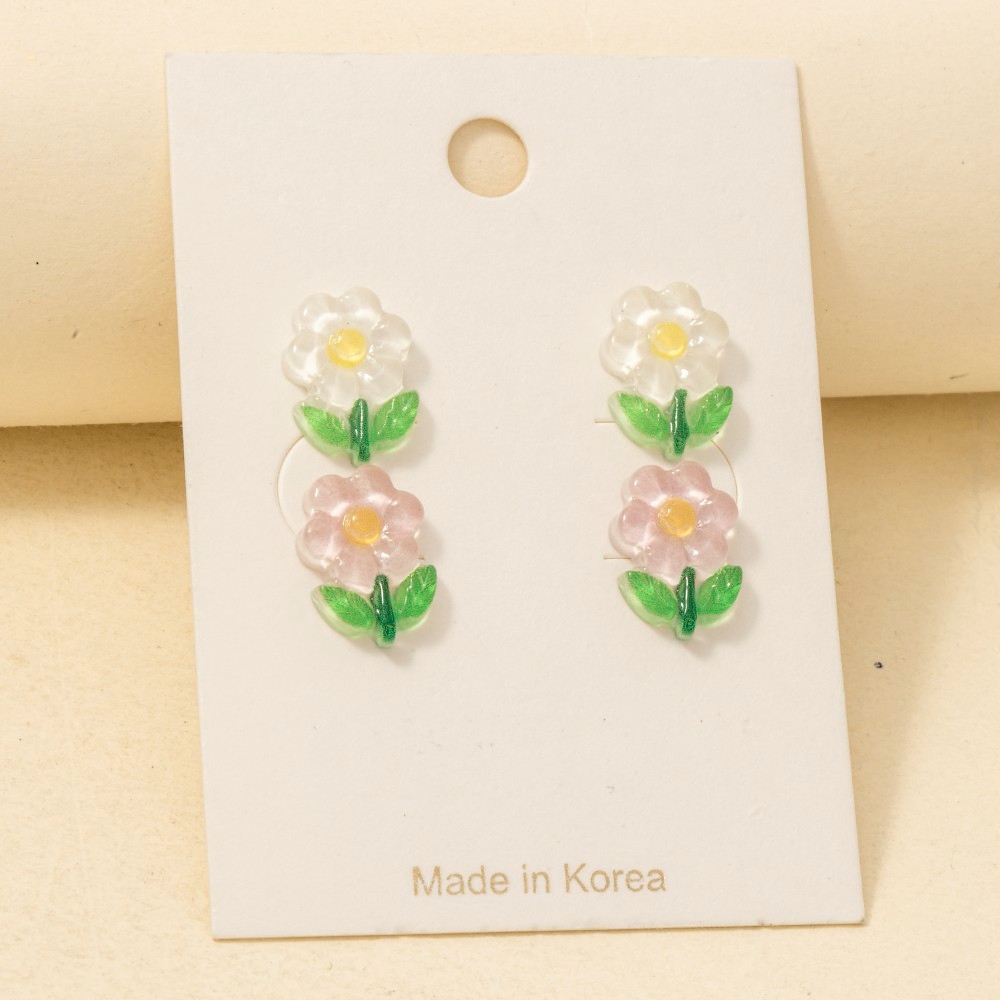 Tiered Colorful Acrylic Flower Petals Dangle Earrings