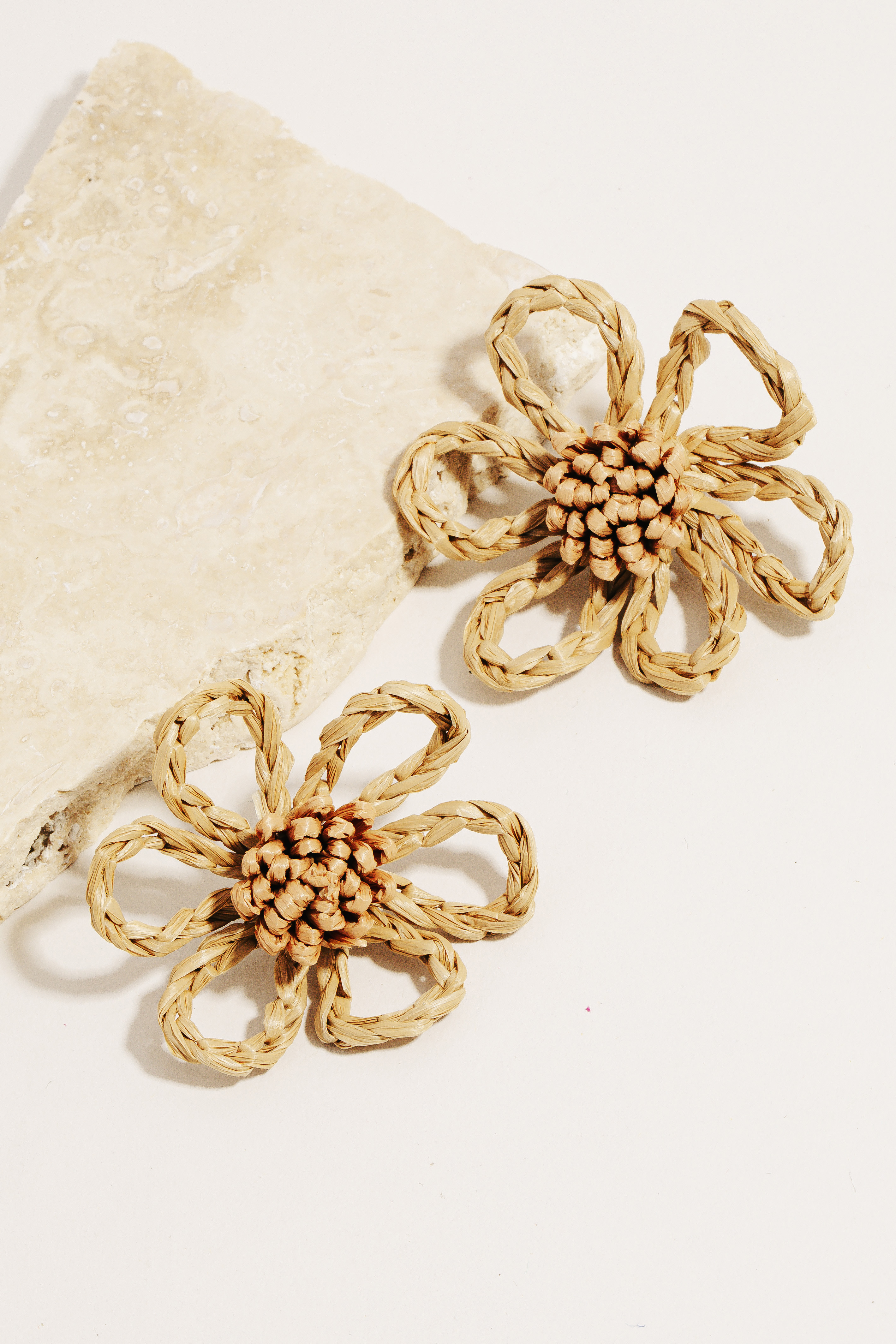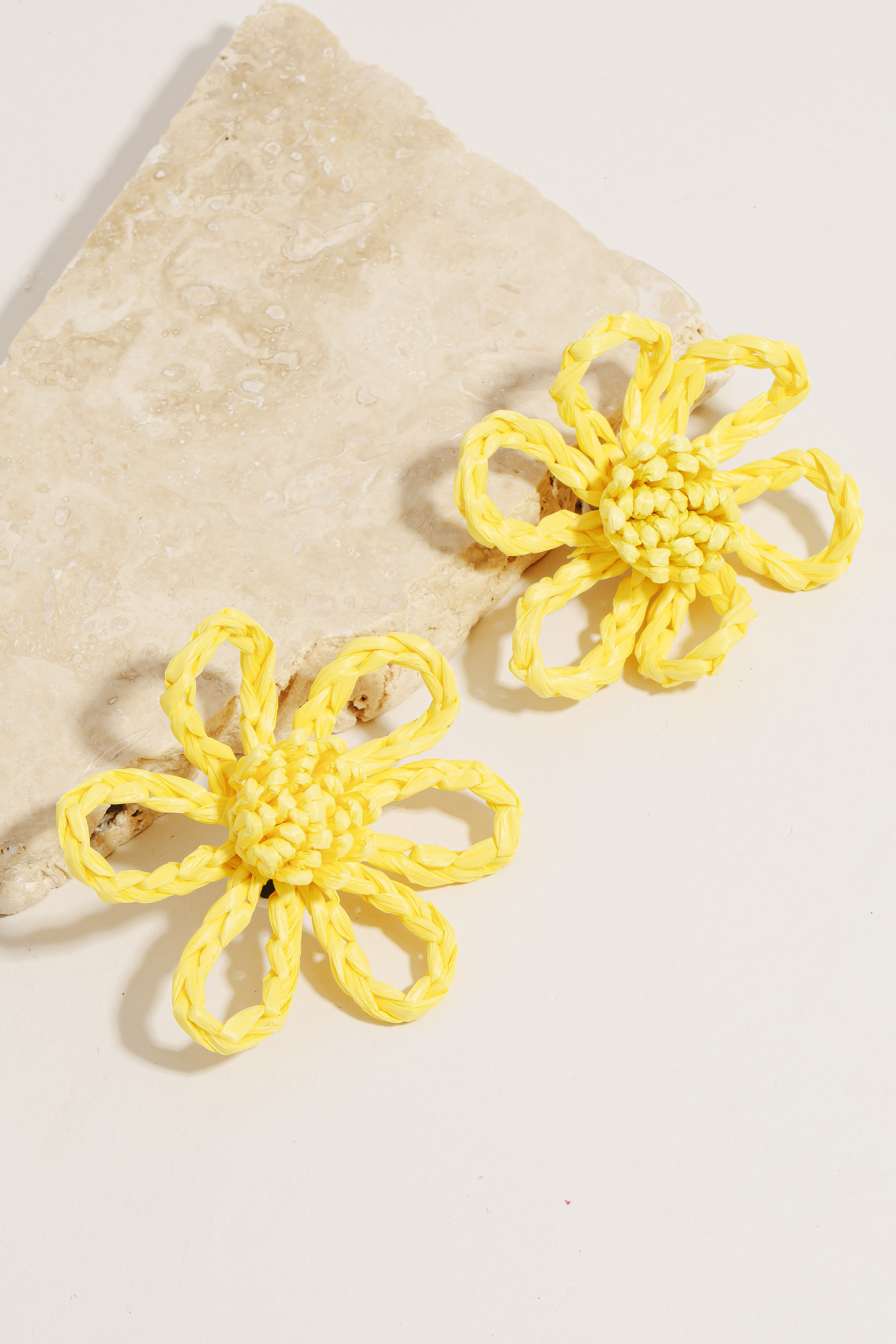 • This pair of stud earrings is made with 60% Rayon Raffia and 40% Steel Zinc.