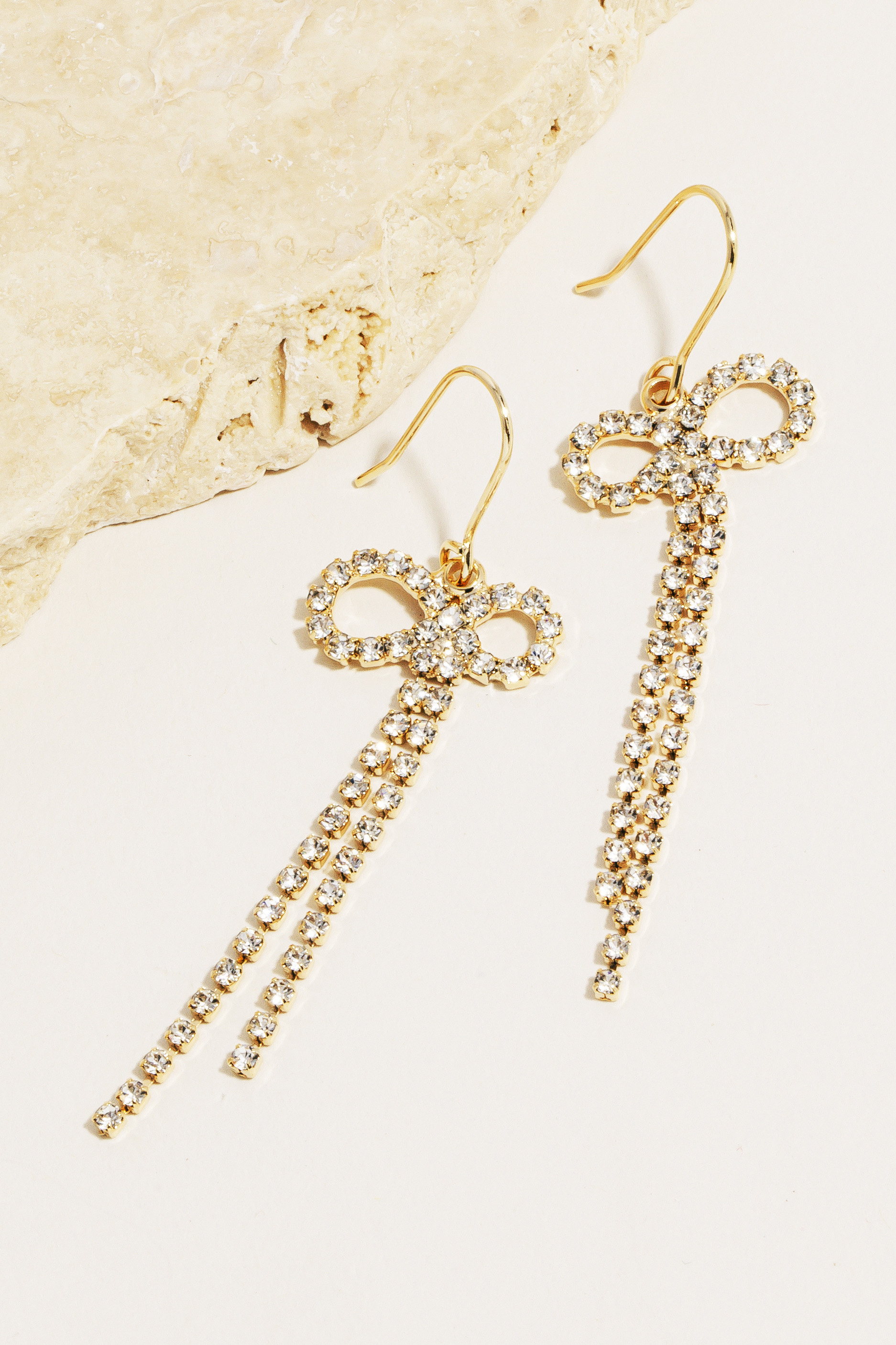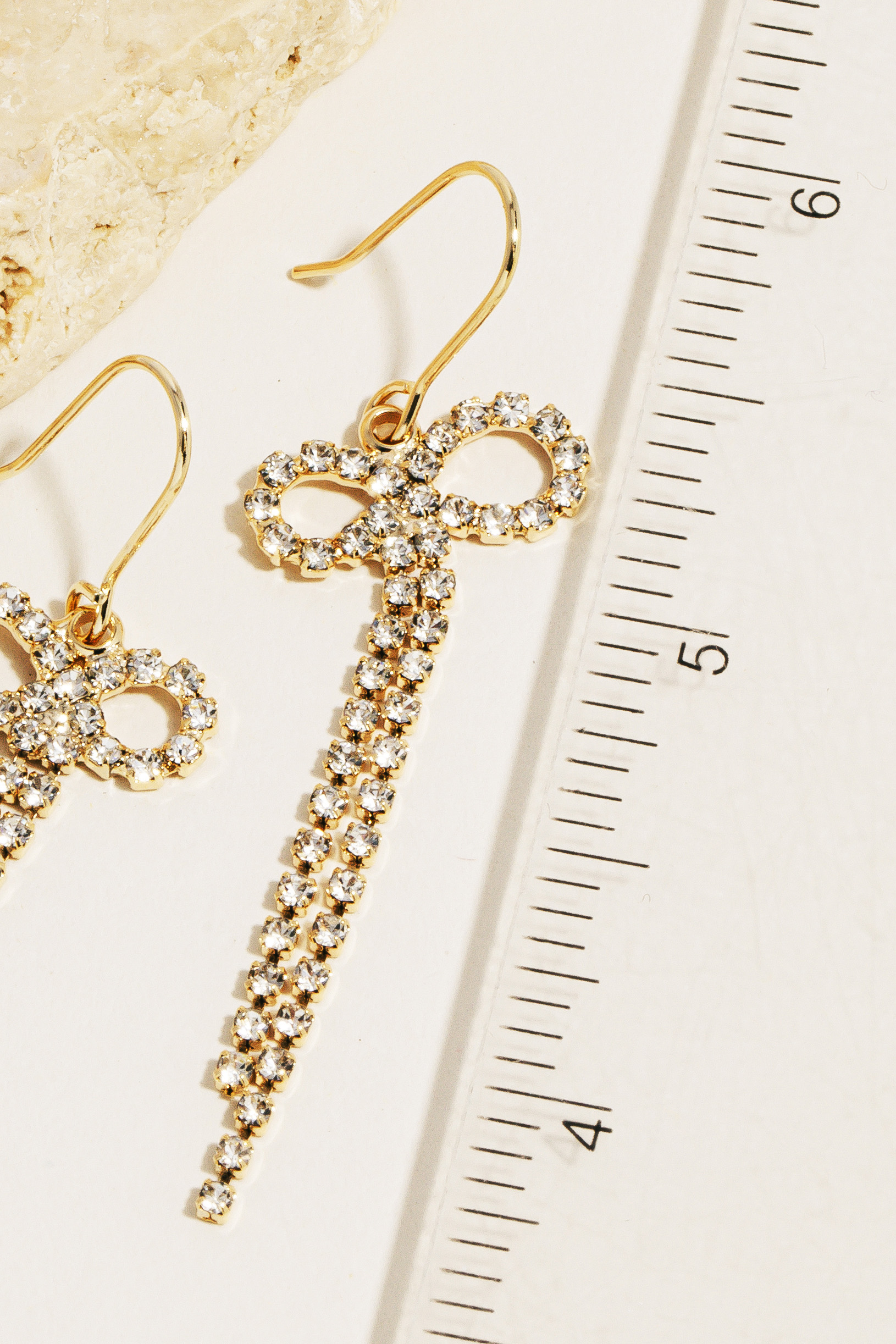 A modern classic, this pair of stud earrings incorporates a remarkable rhinestone ribbon flower design. A must-have accessory for anyone who loves to add some flair to their outfits. Available in G and S. This item is sold in packs of 1.