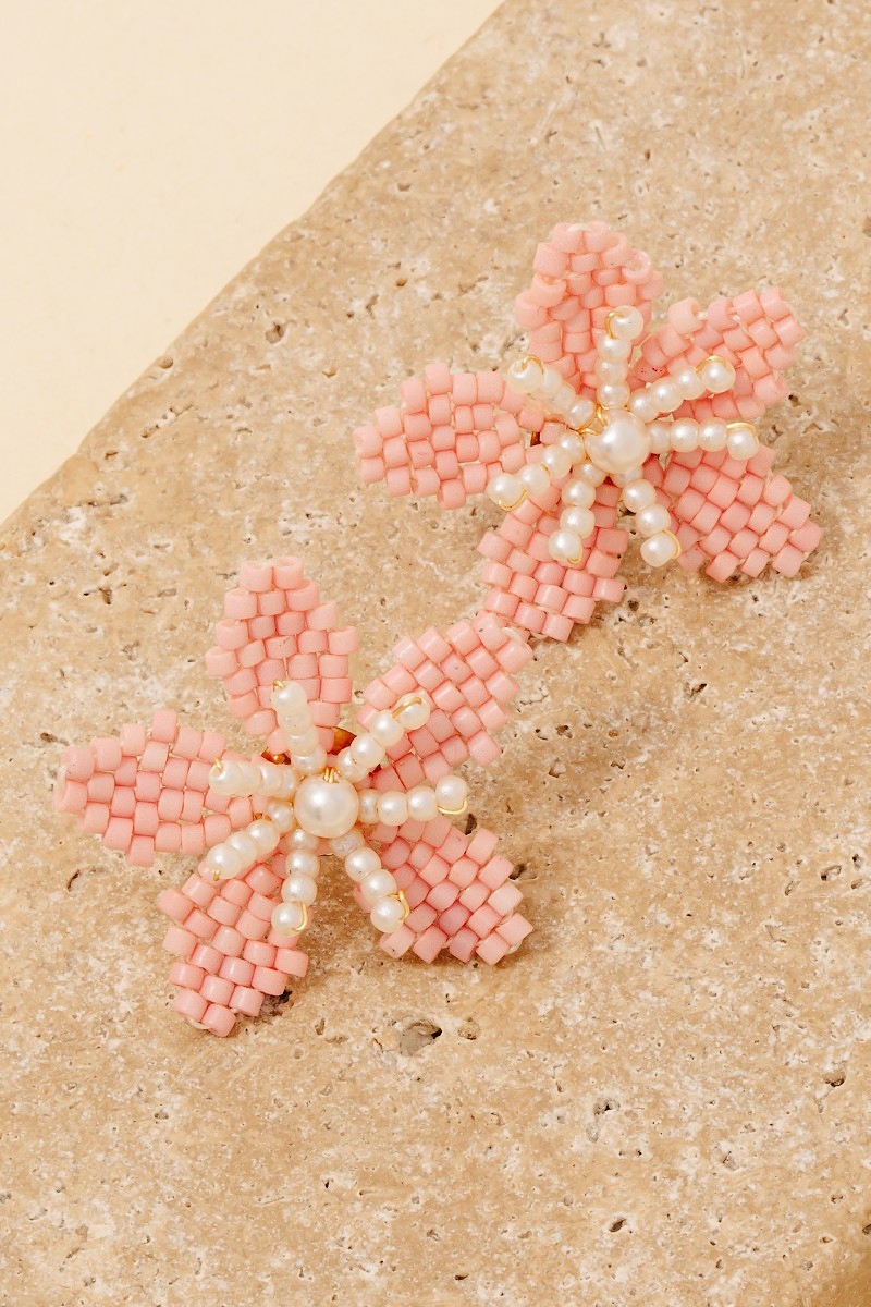 • This pair of stud earrings brings a luxurious seed and mini pearl beaded flower style. Step into a world of refined taste as this pair of stud earrings effortlessly refines the details of your outfit.