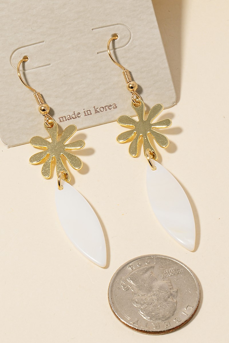 • This piece is perfect for those who want to showcase their unique style, this pair of earrings shows off a distinctive thin oval tear and flower dangle hook design. A must-have pair of earrings that effortlessly enhances your style, no matter the occasion. This item is sold in packs of 1.