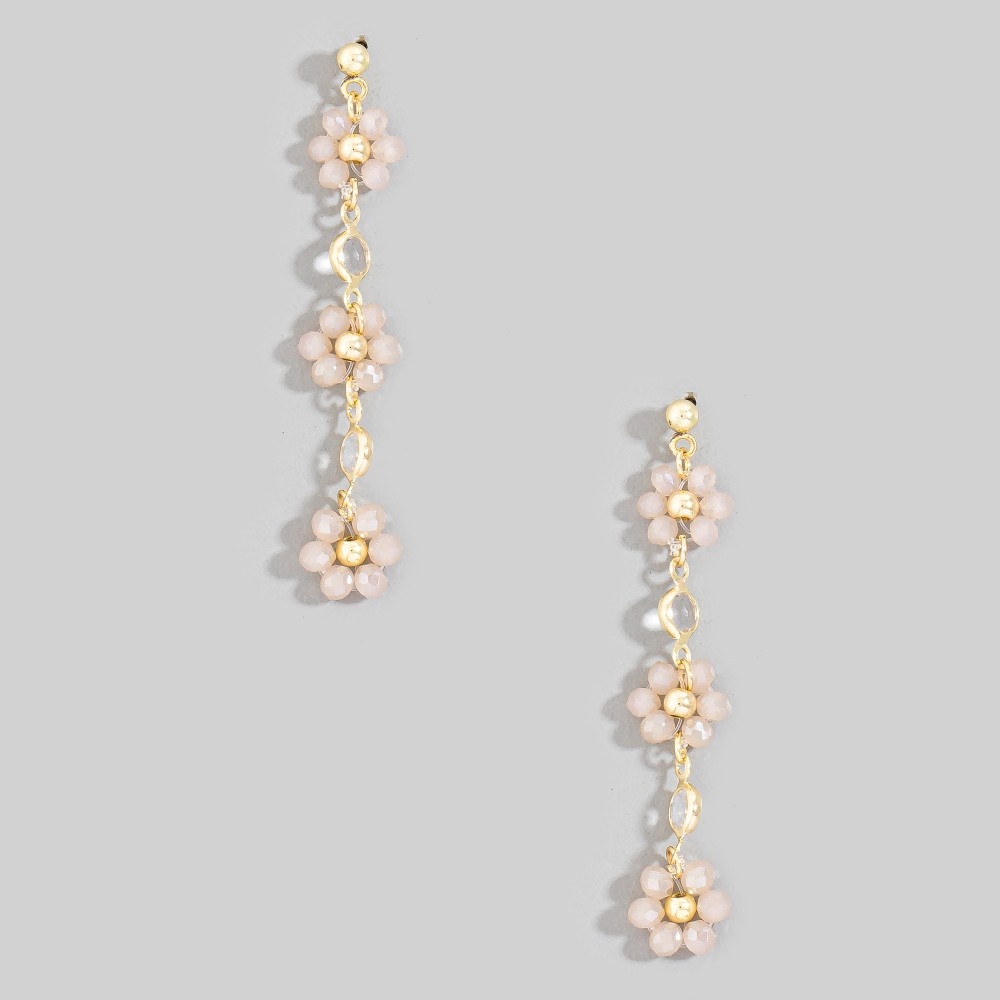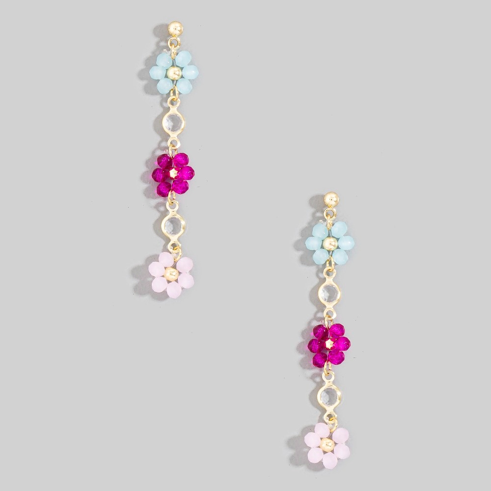 • A versatile piece that can be dressed up or down, this pair of dangle earrings incorporates a remarkable faceted beaded flower chain design. Perfect for adding a pop of color or texture to any outfit, this pair of dangle earrings is a must-have. Available in GDMU, GDPK, GDWH. This item is sold in packs of 1.