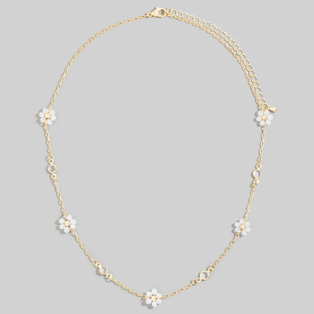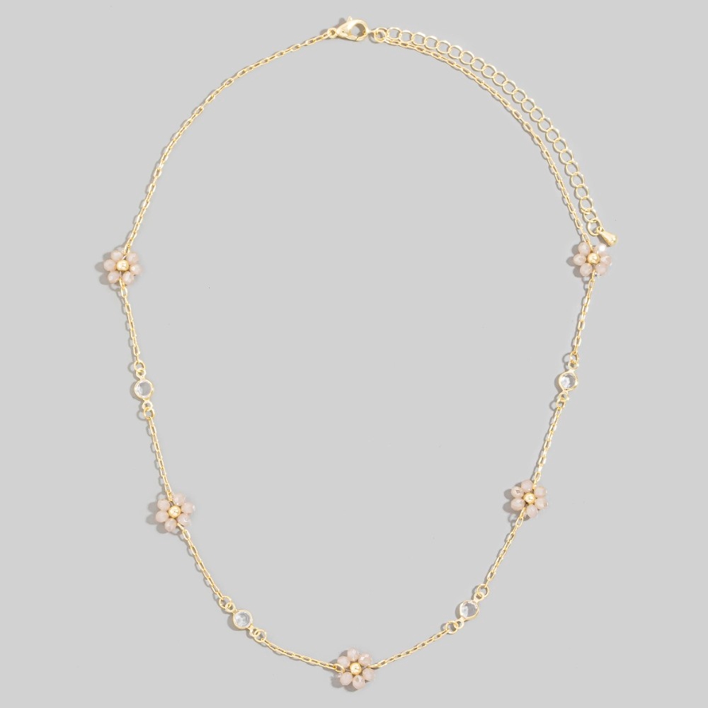 • This piece is a true showstopper, this necklace encompasses a grand faceted beaded flower station charms beaded design. Infuse elegance into your daily wardrobe with the versatile charm of this must-have necklace. Available in GDMU, GDPK, GDWH. This item is sold in packs of 1.