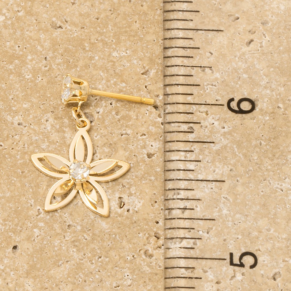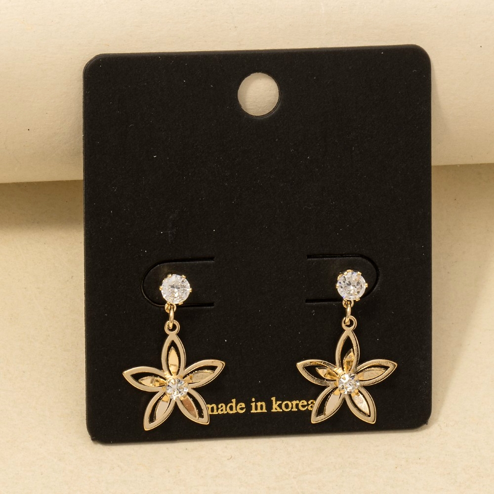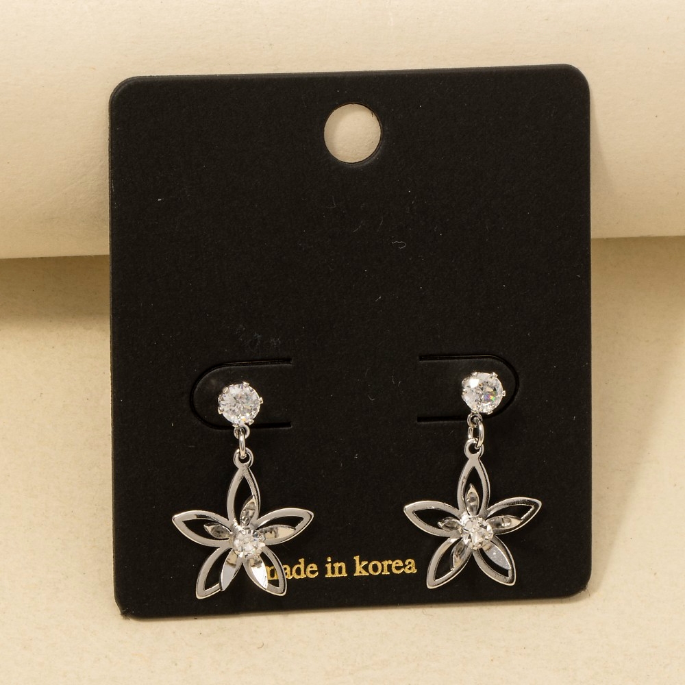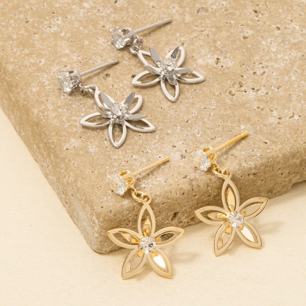 • Guaranteed to add a touch of glamour to any outfit, this pair of earrings displays a unique flower drop cubic zirconia design. The perfect way to complete any outfit, whether you're dressing up or keeping it casual. Available in G, S. This item is sold in packs of 1.
