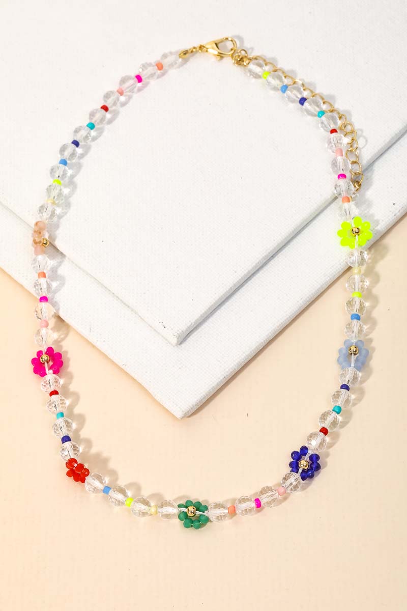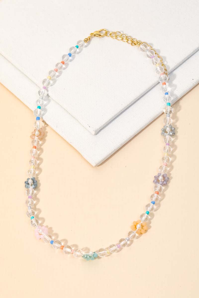 • This is a stunning must have necklace created into a gorgeous flower glass bead station necklace design. Perfect for those who love making a fashion statement. Available in GDHPK, GDNMLT3 and GDWMLT1.