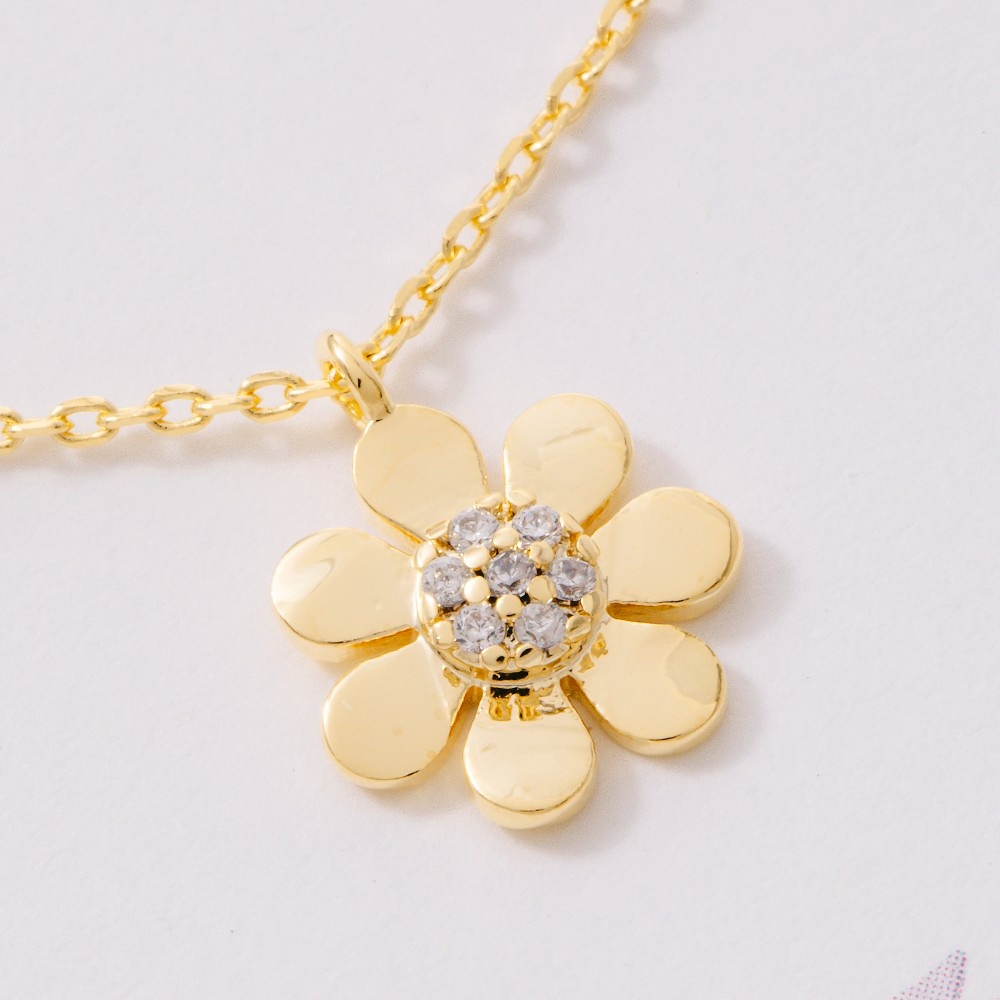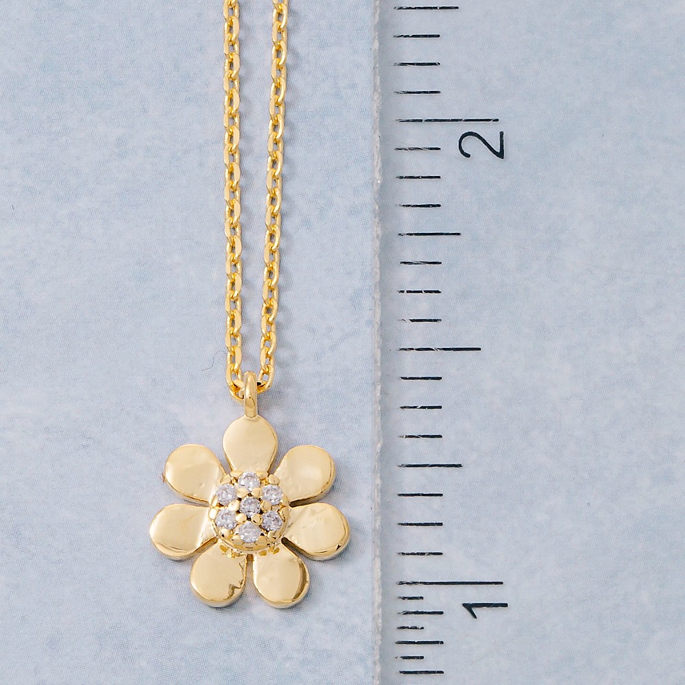 Gold Dipped Cz Stud Flower Pendant Necklace