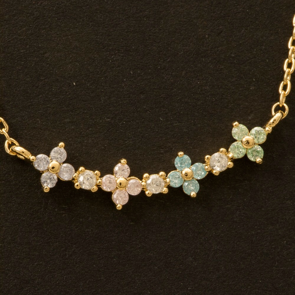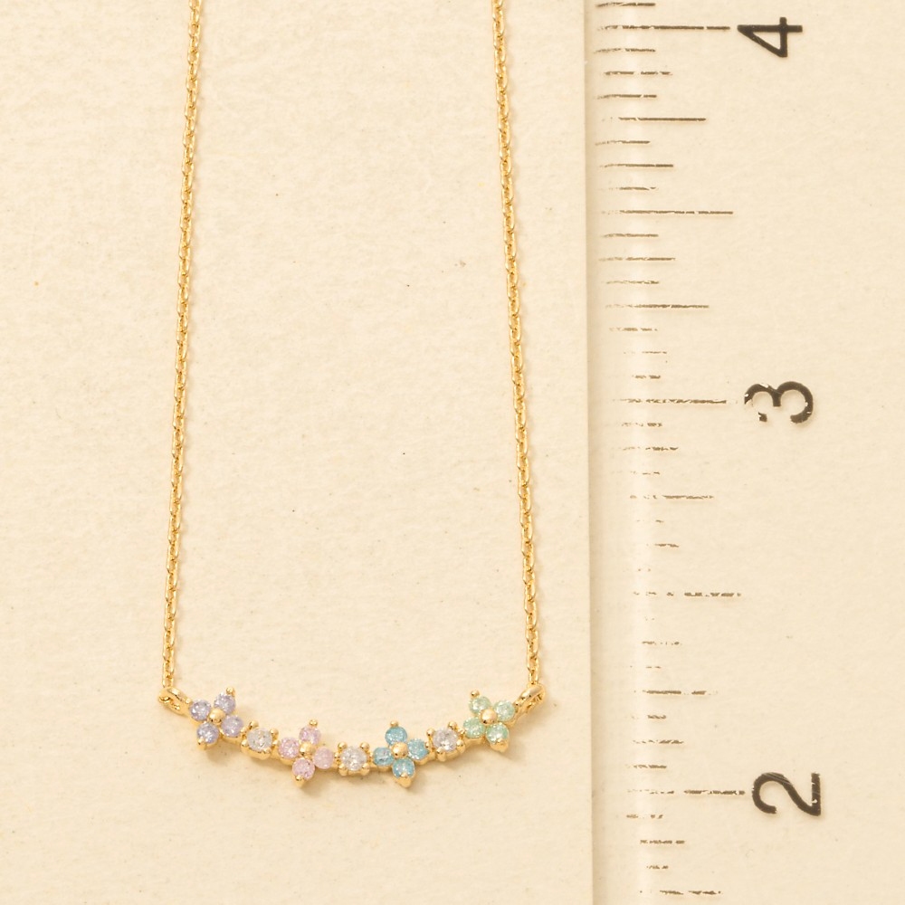 Unleash your inner fashionista, this necklace evokes a captivating gold dipped cubic zirconia multi flower charm design. This item is a great way to add some texture and dimension to any outfit. This item is sold in packs of 1.