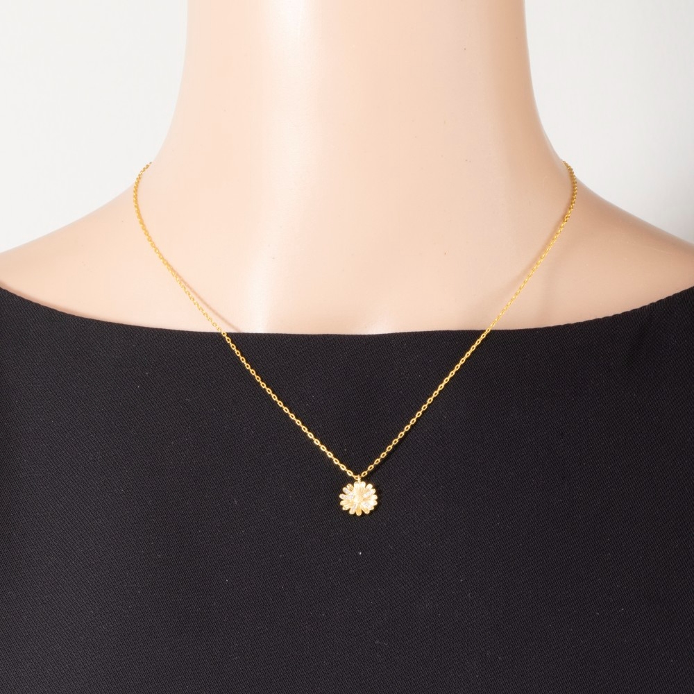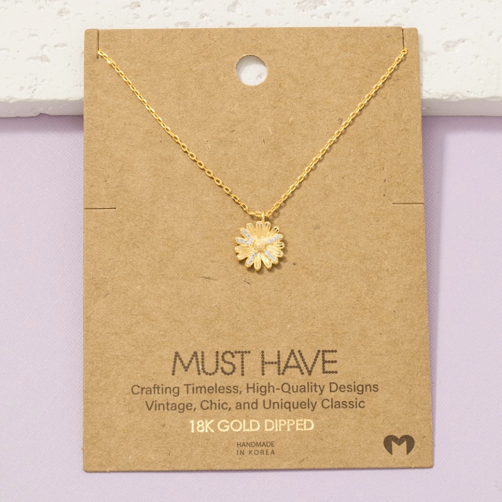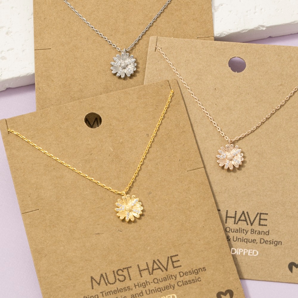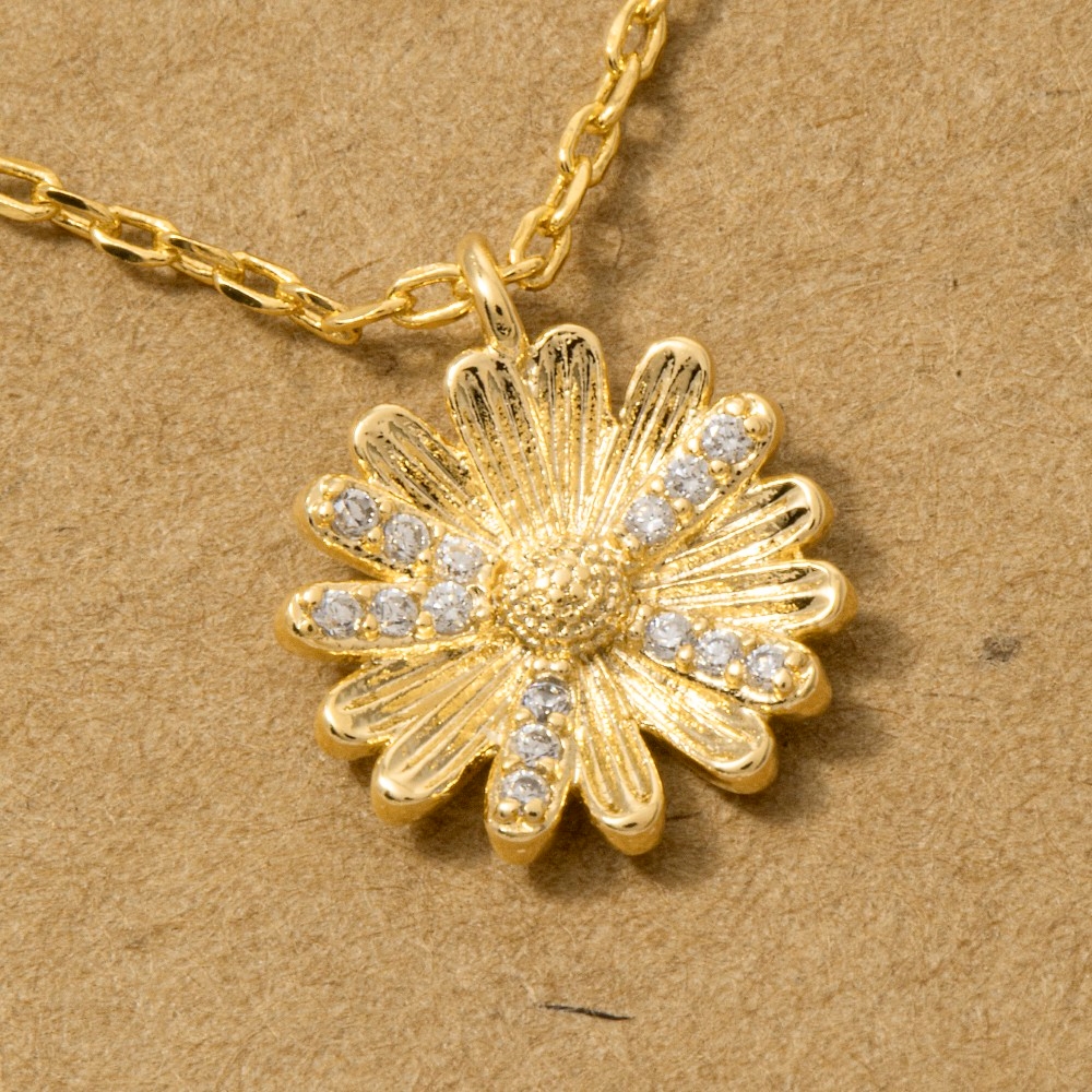 • This season's hottest pendant necklace, this pendant necklace adds a distinctive gold dipped cubic zirconia studded flower design. This item is the perfect finishing touch to any outfit, adding a touch of glamour and sophistication. Available in G, R, S. This item is sold in packs of 1.