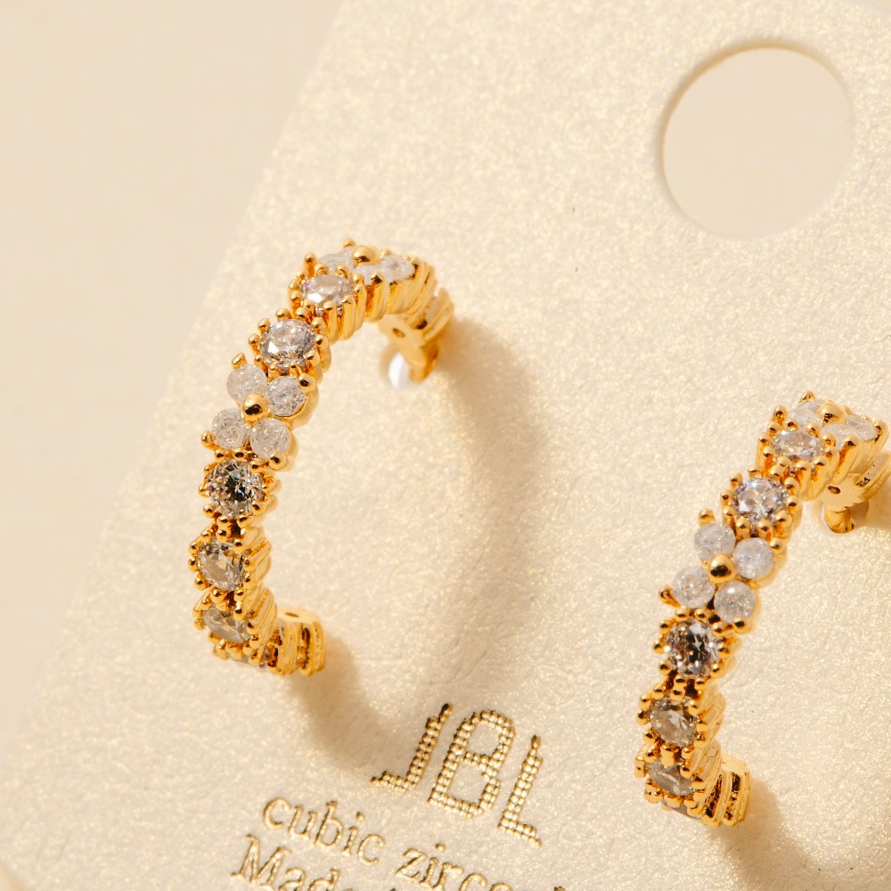 • Elevate your style with something unique and daring, this pair of hoop earrings possesses a fine gold dipped mini cubic zirconia flower design. The perfect way to complete any outfit, whether you're dressing up or keeping it casual. Available in G. This item is sold in packs of 1.
