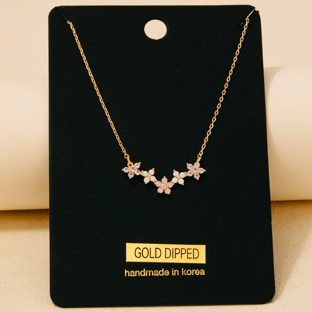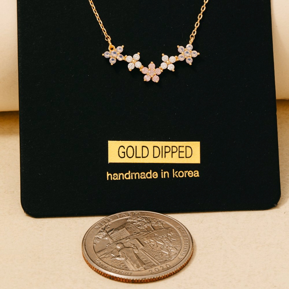 Gold Dipped Cz Stud Flower Pendant Necklace