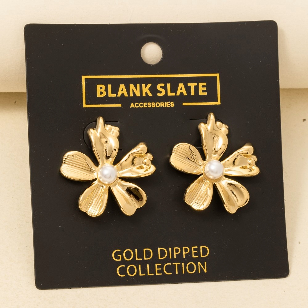 • Chic, sophisticated, and always in style, this pair of stud earrings presents a striking gold dipped pearl flower large design. Elevate your personal style effortlessly with this versatile pair of stud earrings, an essential component for a refined wardrobe. Available in GOLD. This item is sold in packs of 1.