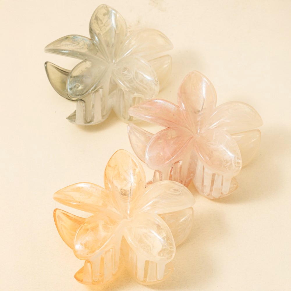 Stay on-trend and ahead of the fashion curve, this reveals an intricate 3pc large swirly iridescent flower hair claw design. Perfect for dressing up your favorite outfit, this is a must-have. Available in ASSORTED. This item is sold in packs of 1.