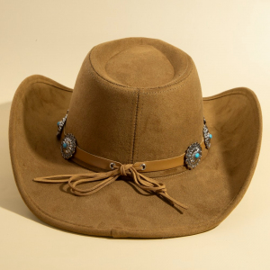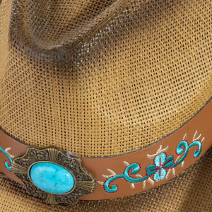 Western Straw Turquoise Stone Floral Strap Cowboy Hat